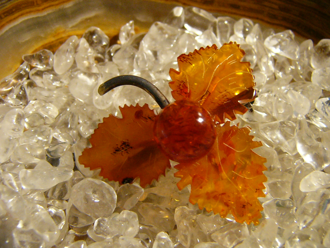 Da war nur noch eine kleine Schachtel der Inhalt diese Bernstein Brosche und auch noch ein Krümmelchen Bernstein