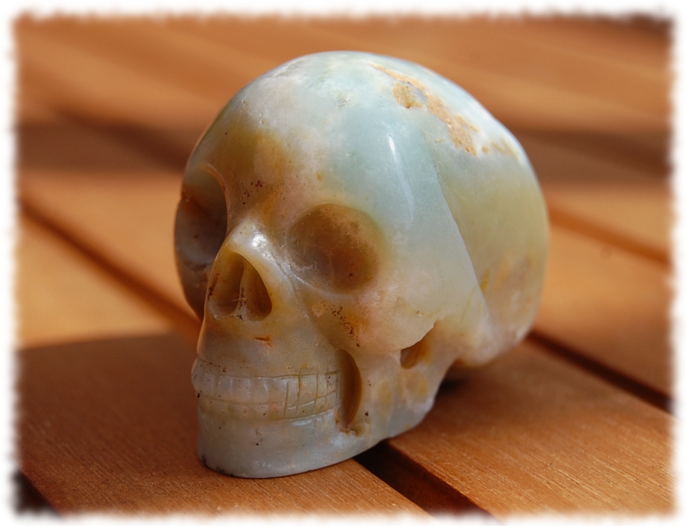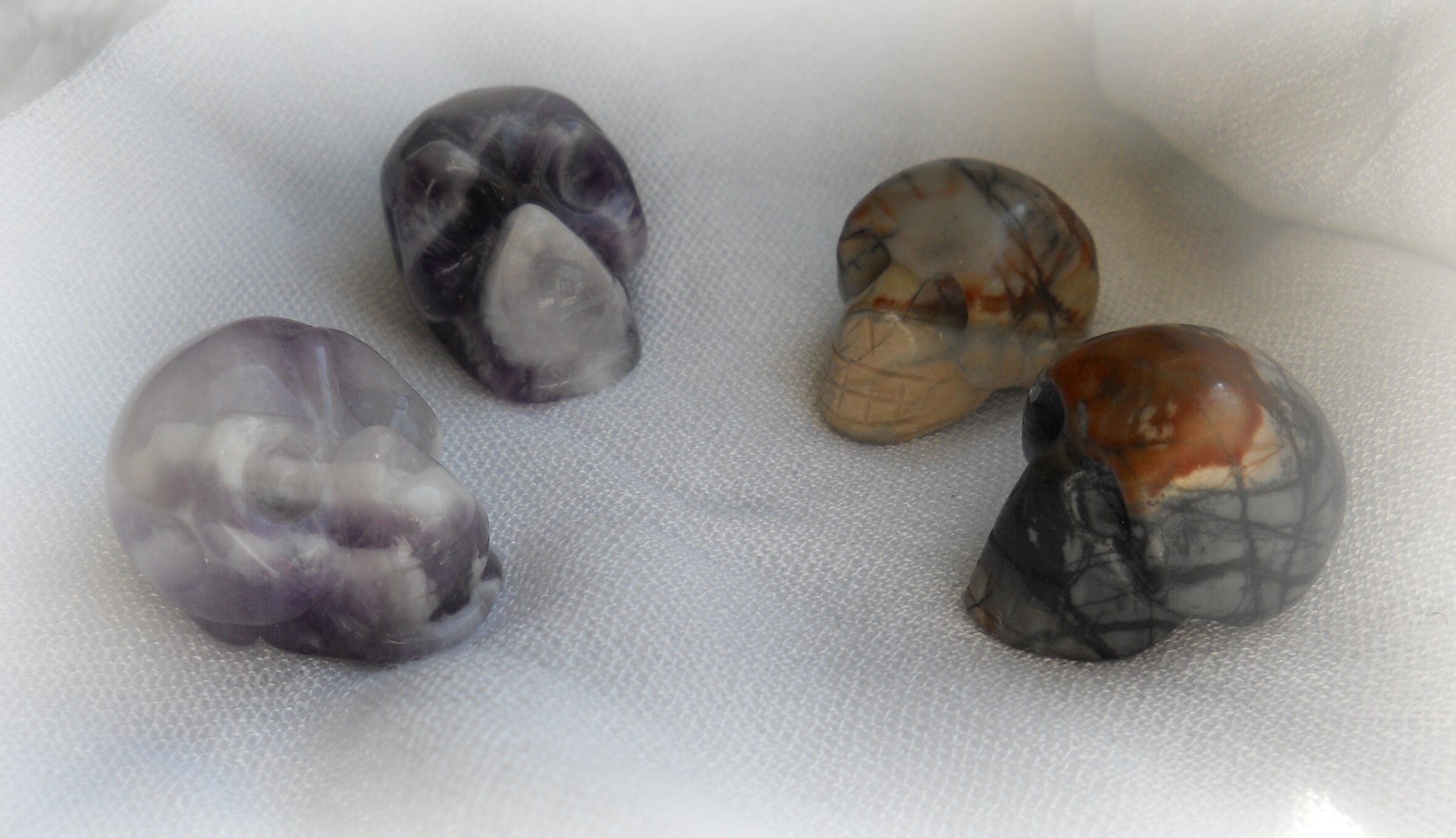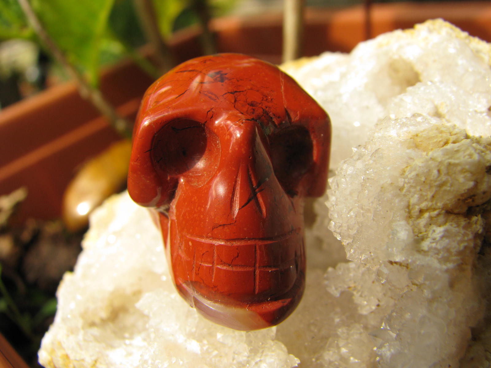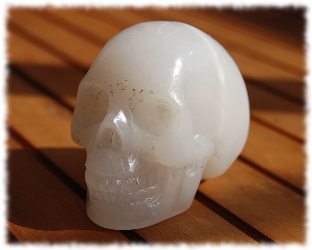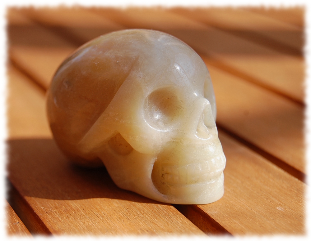 Das hier ist Pueblo, ein kleiner Bambus-Jaspis-Skulli. Auch er hat mir ganz lieb seinen Namen verraten... Weiter geht´s mit Nuri (oder Nuriel, weiß ich nich nicht sicher)... ... und einem etwas schüchternen Schädelchen, das mir seinen Namen noch nicht verraten und sich auch nicht so gern fotografieren lassen wollte...