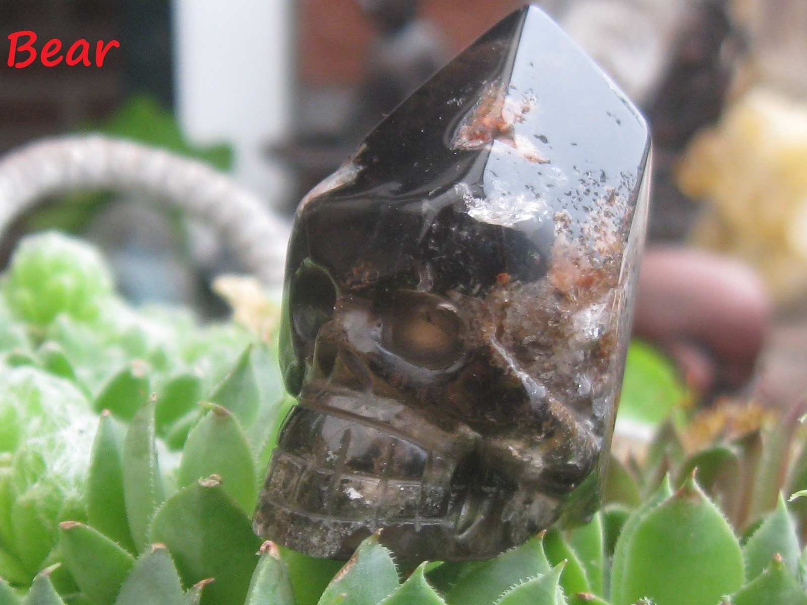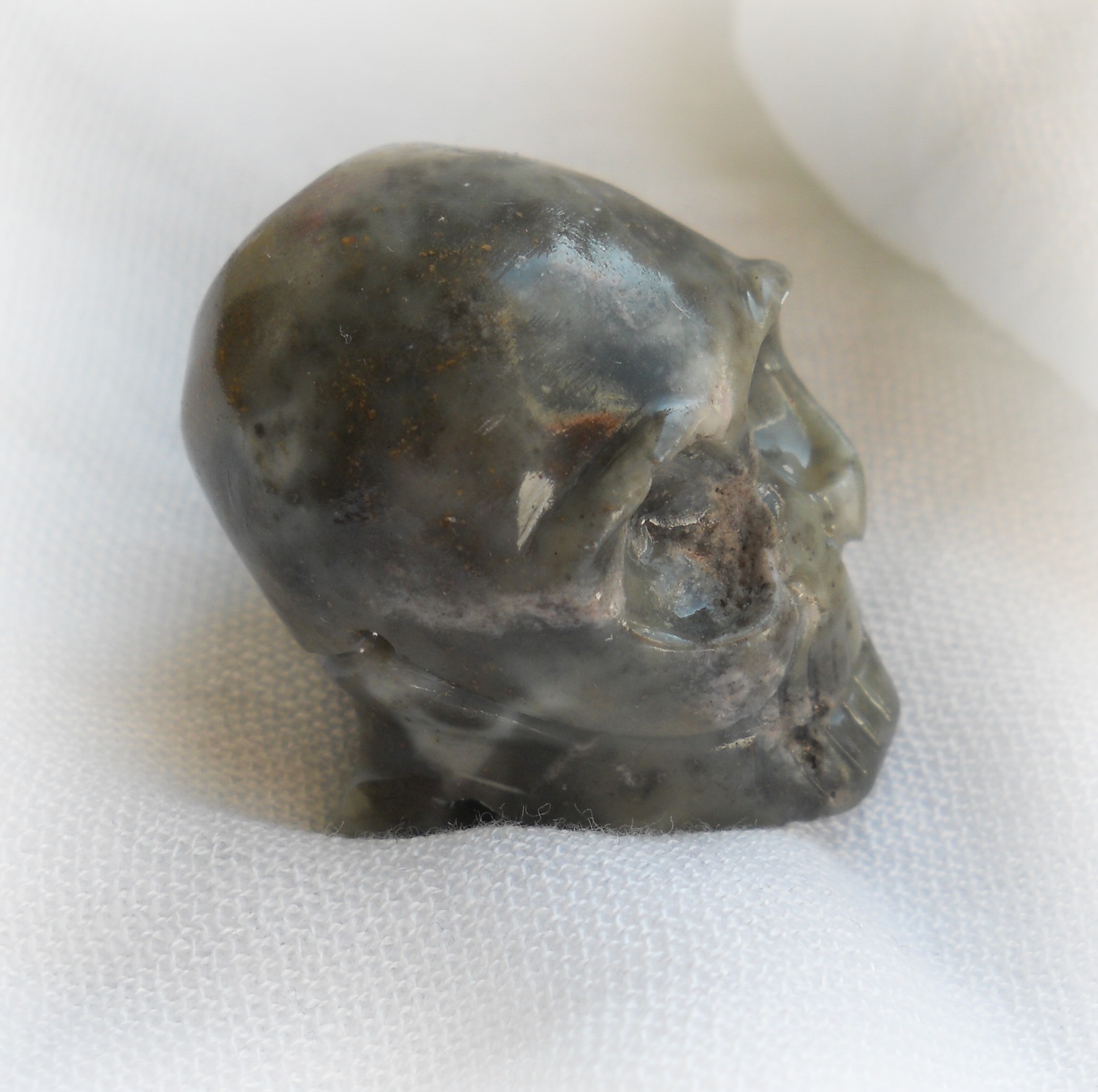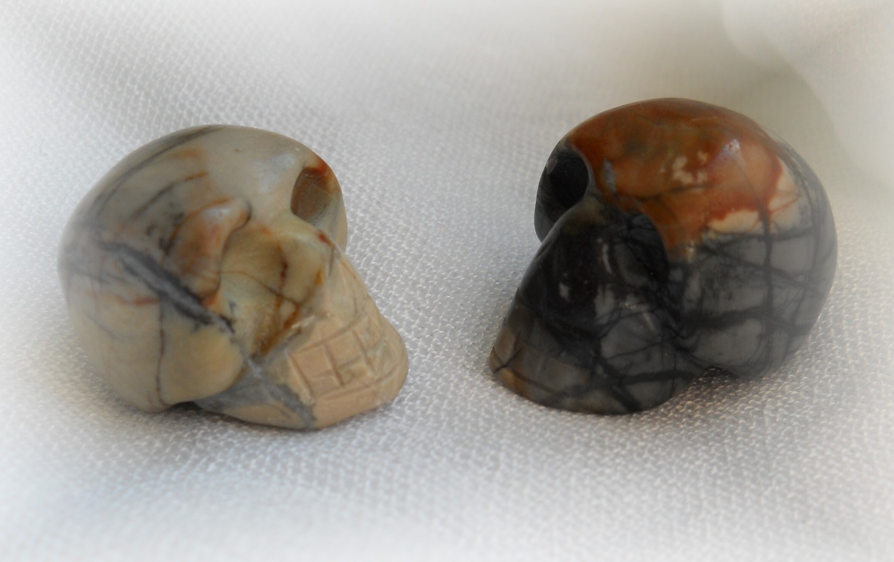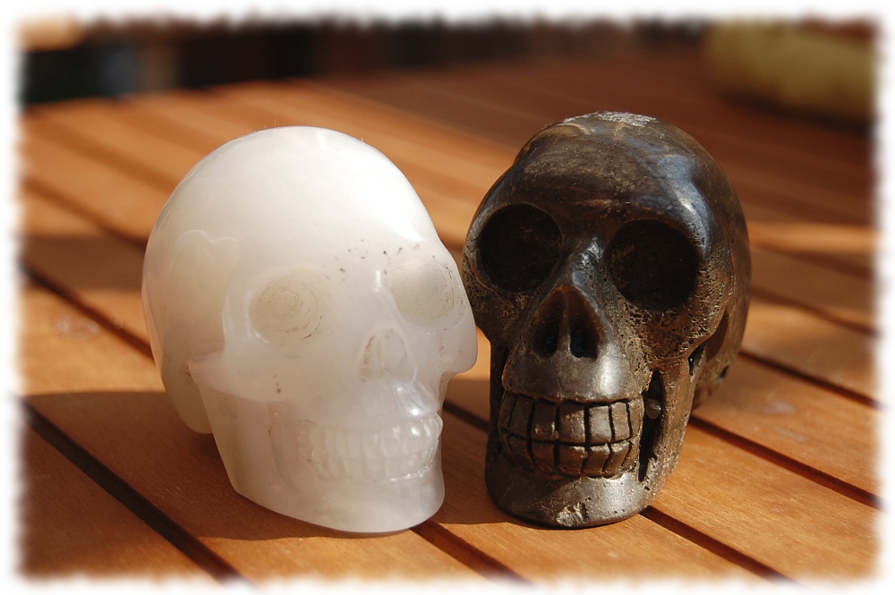Das hier ist Pueblo, ein kleiner Bambus-Jaspis-Skulli. Auch er hat mir ganz lieb seinen Namen verraten... Weiter geht´s mit Nuri (oder Nuriel, weiß ich nich nicht sicher)... ... und einem etwas schüchternen Schädelchen, das mir seinen Namen noch nicht verraten und sich auch nicht so gern fotografieren lassen wollte...