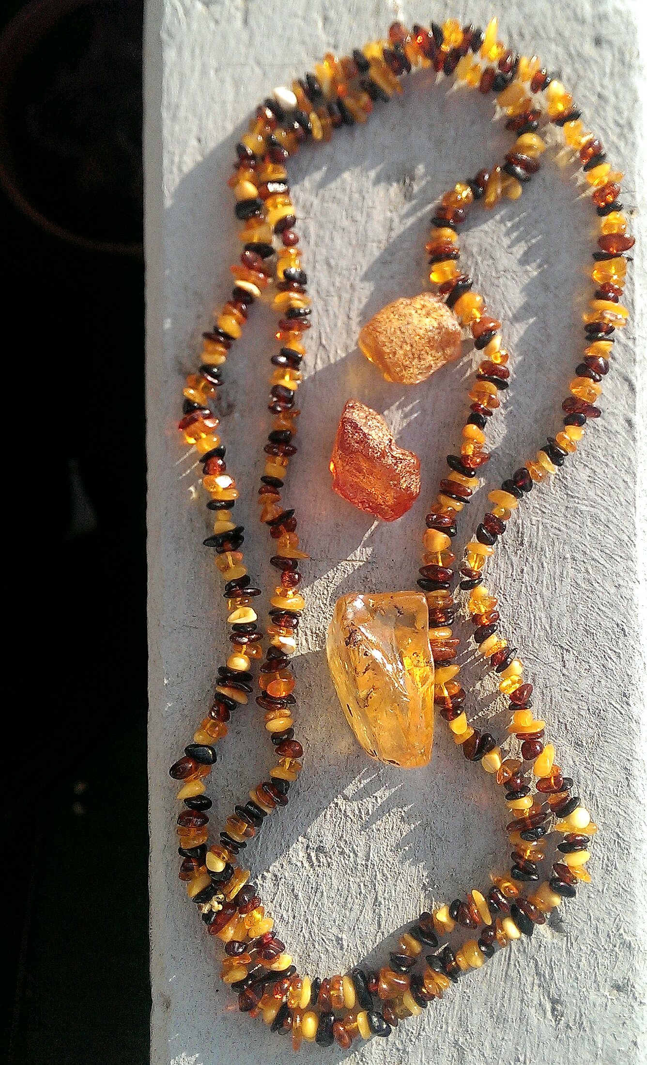 Die waren aus der Dominikanischen. Die Händlerin ist auf Ebay, die hat auch gelben und grünen Bernstein und Larimar