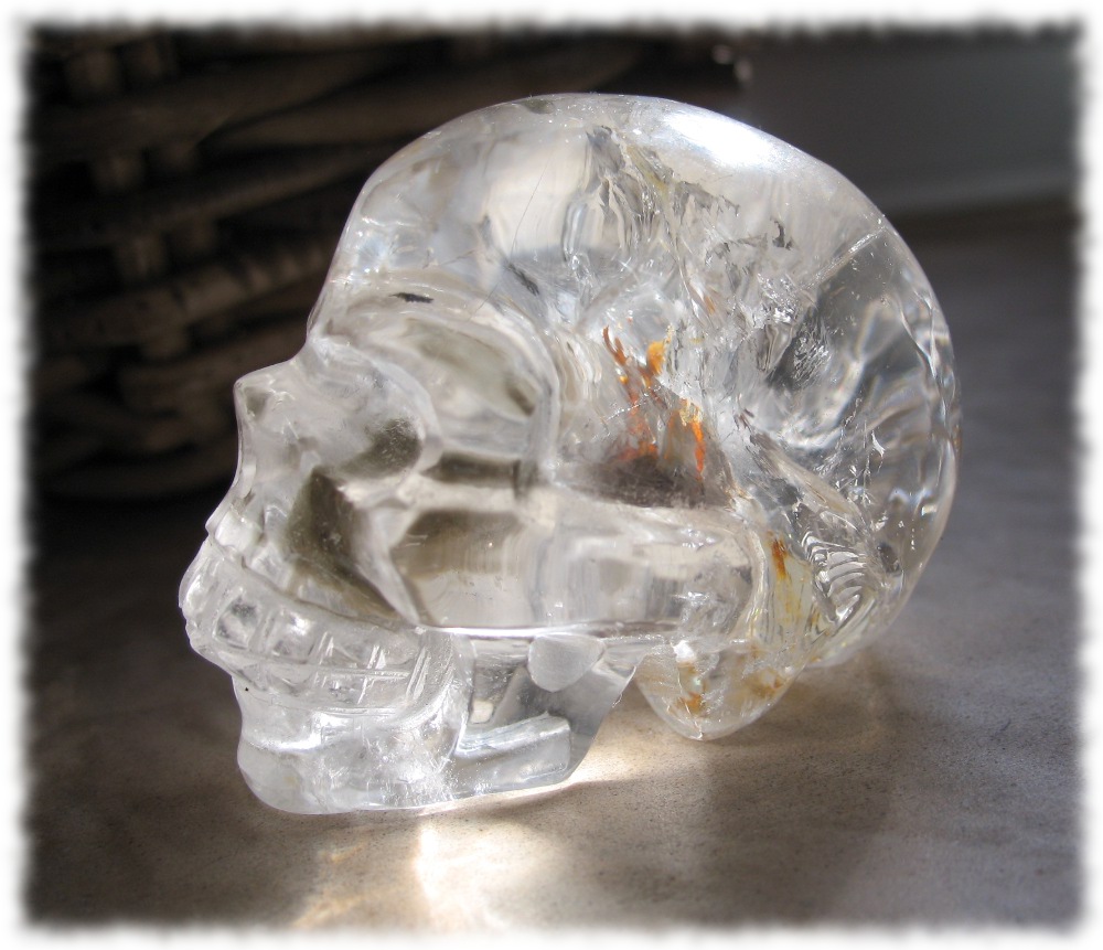 Ist das eine ein Rutilquarzschädel? Der leuchtet auch so schön mit seinen güldenen Fäden...