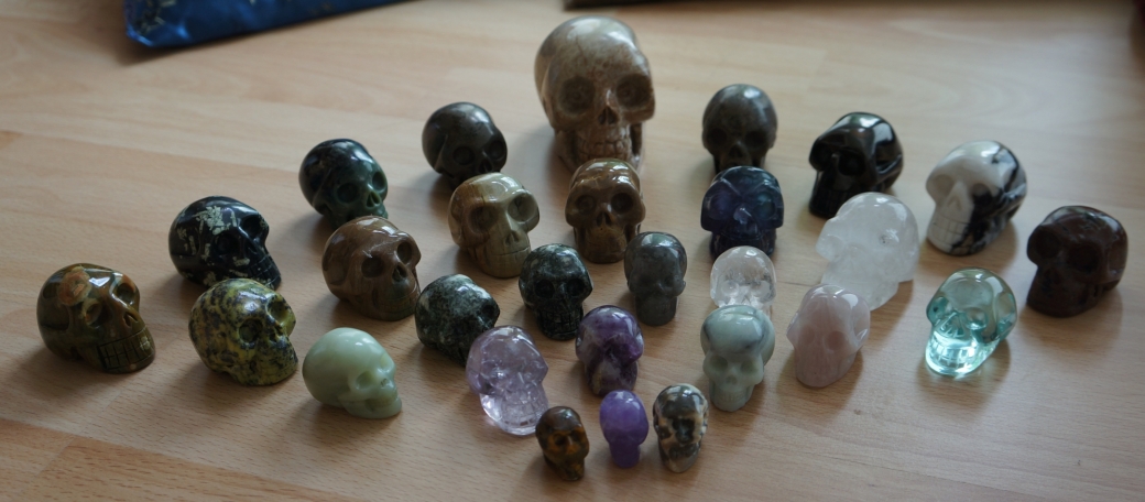 Hab da mal ne Frage: Kann es sein das sich manche Schädel regelrecht gegenzeitig suchen um wieder vereint zu sein? Hintergrund ist der heute kam ein kleiner zu mir hat mir seinen Namen auch gleich verraten und gleich nach einen Schädel gefragt ob der schon da ist... was soll ich sagen naja sicher war er da und da ist der kleine ganz glücklich zu dem besagten Schädel gehüpft die Einzelheiten mit Abknutschen und so lasse ich mal lieber außen vor es war auf jedenfall großen Wiedensehensfreude angesagt oh ja und kuscheln.