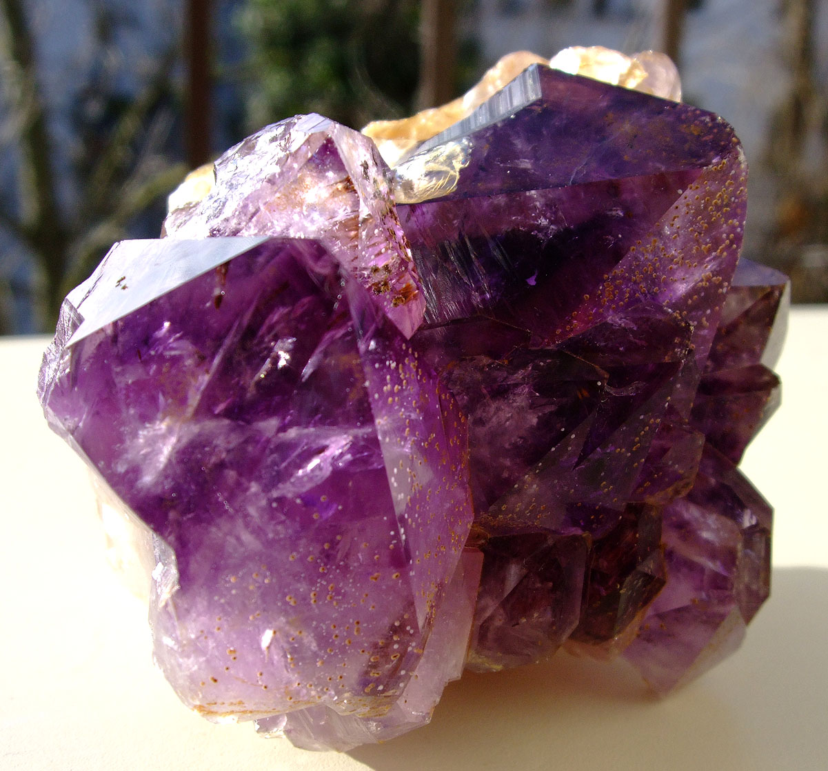 Ich habe neulich einen Amethyst mit Goethit und Phantomen vom Flohmarkt errettet:
