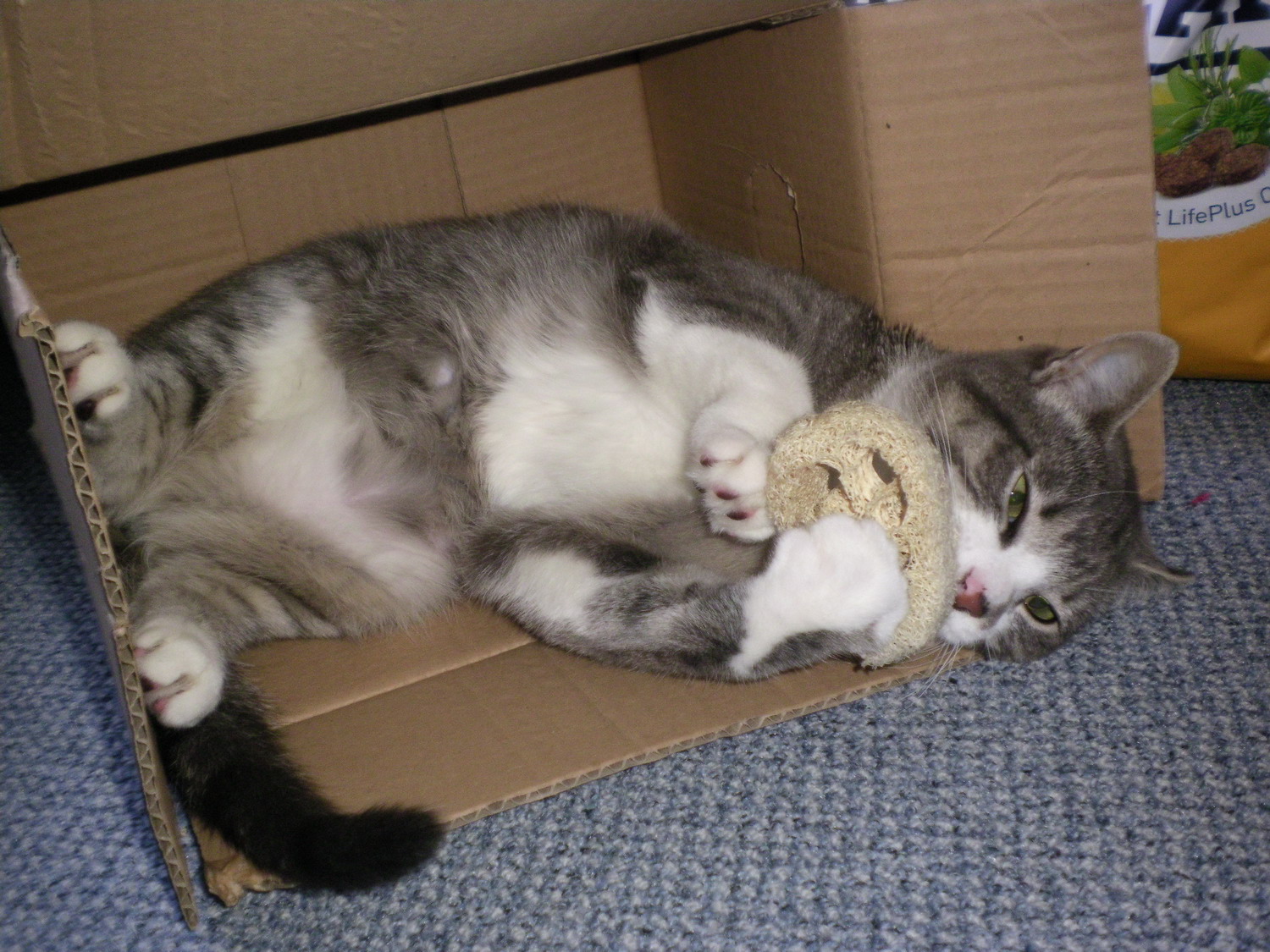 Haha-Katze im Karton, das sieht ja zum schiessen aus