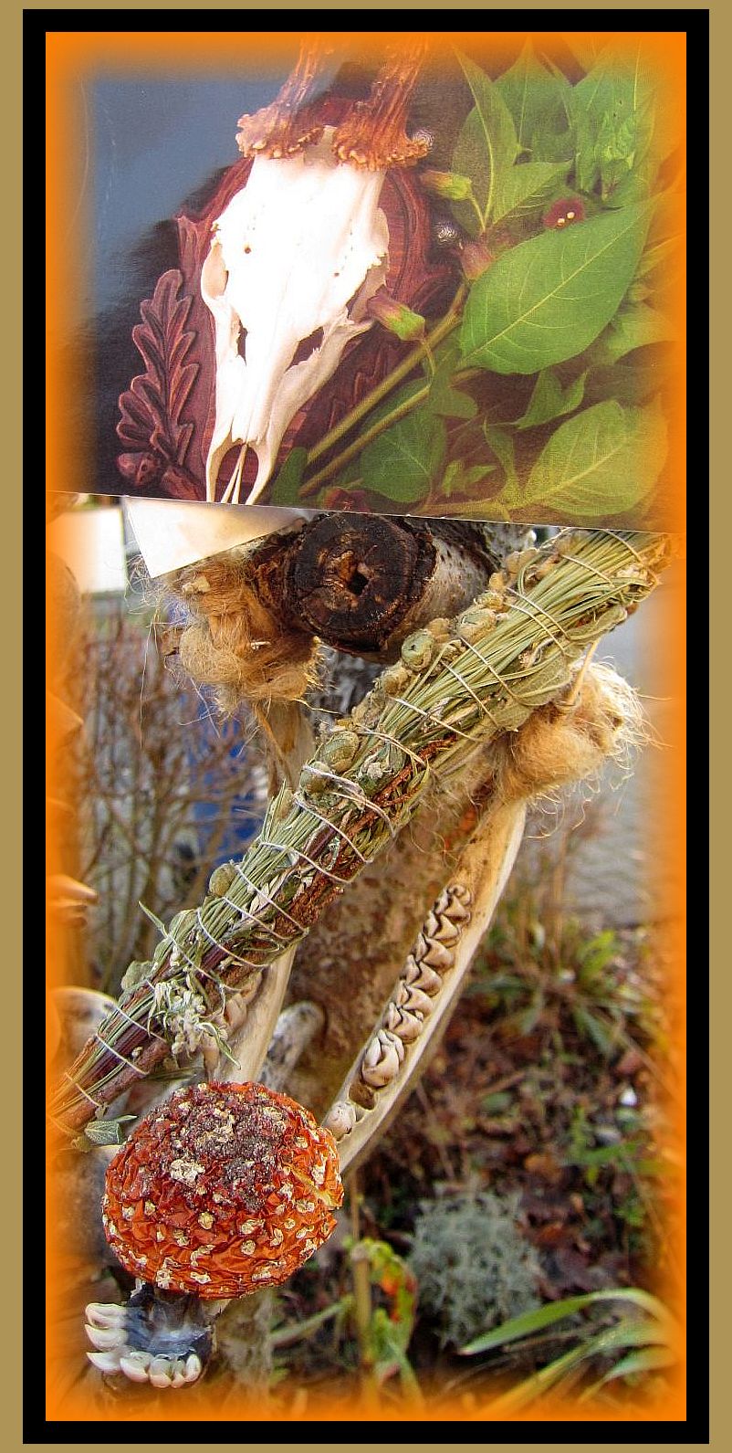 ..............und da hielt ich ein mit ganz viel Liebe zusammengschnürtes Räucherbündel, ein Tütchen mit duftendem Inhalt und einen getr. Fliegenpilzkopf in der Hand, die Freude war riesengroß