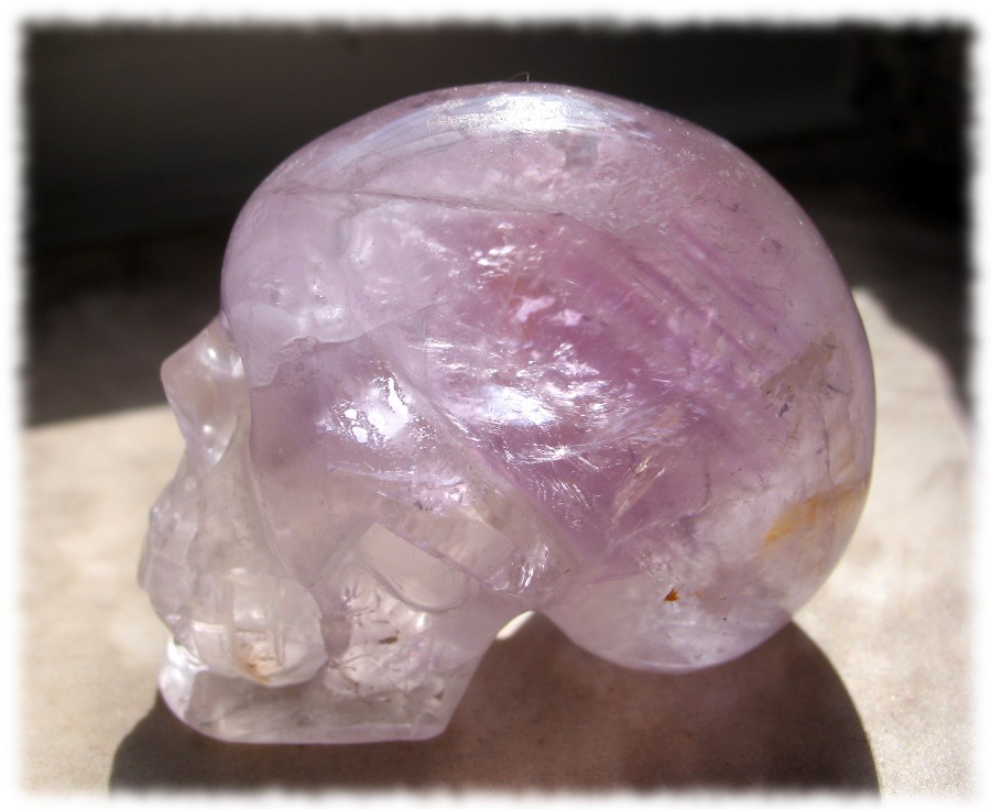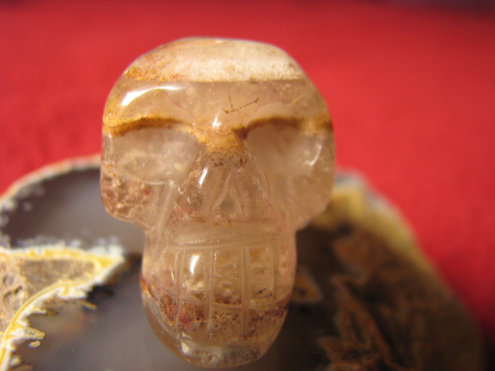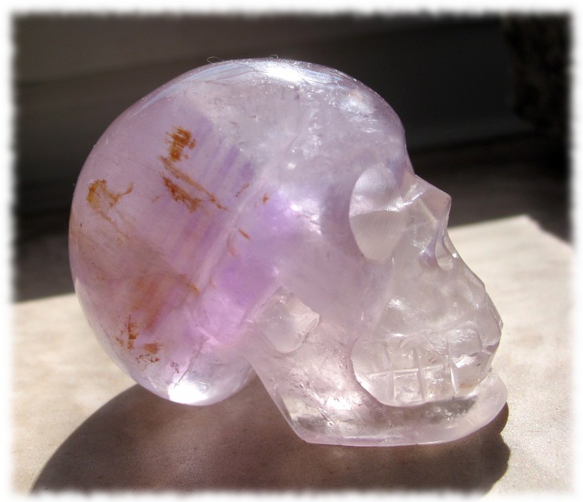 Hier hab ich mal eben meinen Rutil-Quarz- Schädel etwas auf die Schnelle geknipst, er ist voller Nadeln, aber die meisten hinter den Zähnen