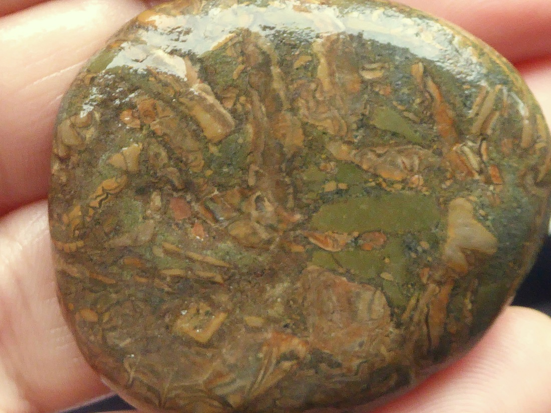 Hier ist noch ein Fund den ich toll finde weil so noch nie hier gesehn. Ich sag mal einfach Schlangenjaspis gg, weil ist ja vermutlich ein Fossilien-Kalkmergel denke ich. Hab etwas kontrast erhöht und helligkeit höher um die strukturen besser sichtbar zu machen: