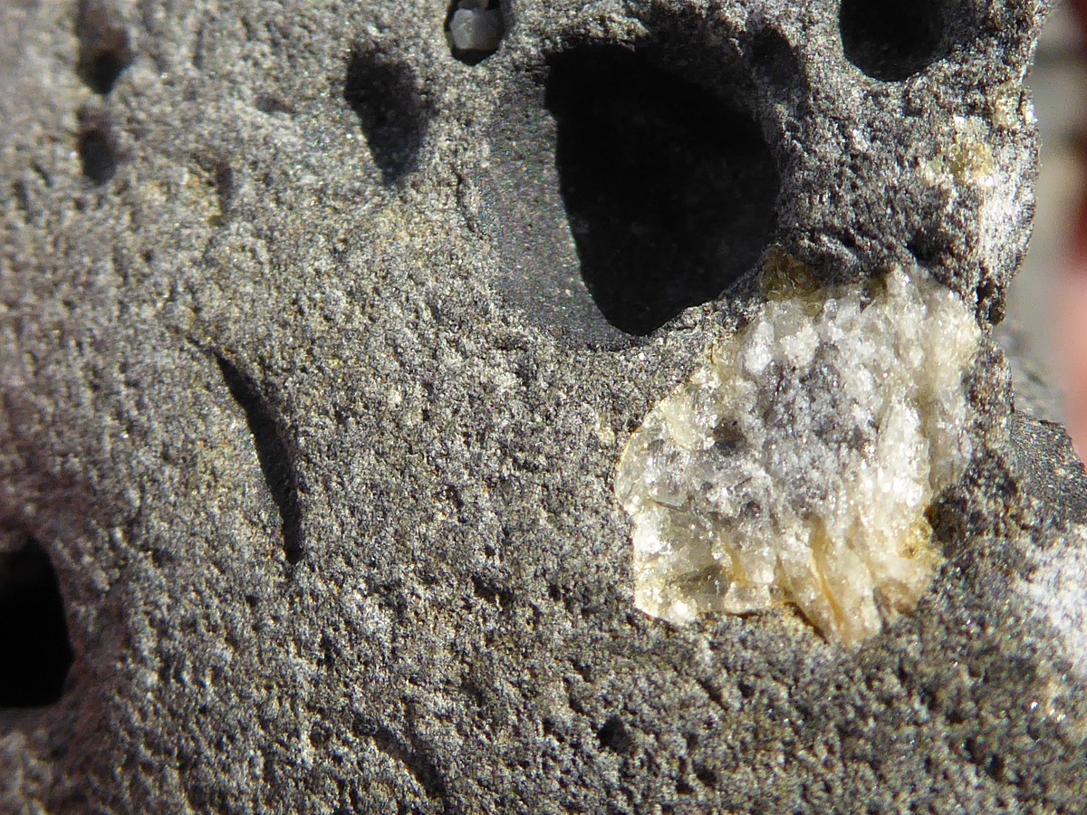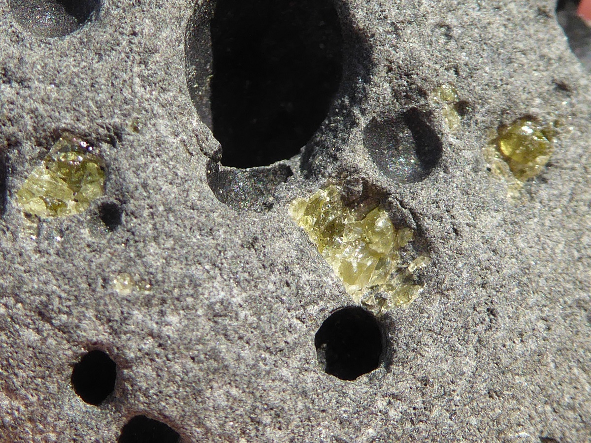Basalt mit Gasblasen und Olivin und ich glaube Plagioklas