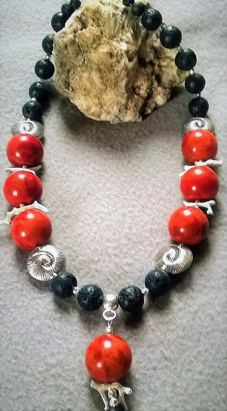 Die schwarze Lava und rote Koralle ist einfach eine ganz tolle Kombi... Immer wieder sehr ansprechend!