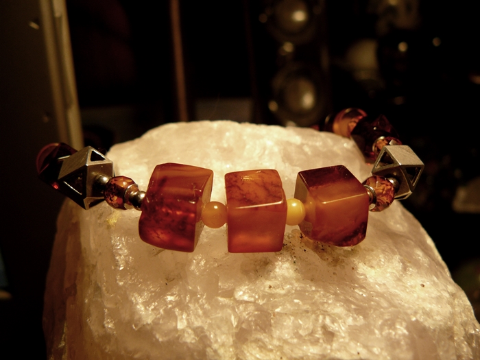 das hab ich gestern aus roter Schaumkoralle, schwarzer Lava und silbernen Korallenästen gekettelt.