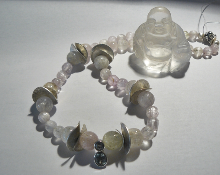 Bei der Kette dachte ich zuerst, dass die zierlichen, gedrehten Silberteile zu filigran für diese Kette seien, aber da sie sich weiter oben ja wiederholen, finde ich es dann doch stimmig. Viel Freude dir beim Tragen!