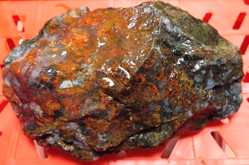 Bei diesen dreien habe ich darauf geachtet, dass auch möglichst viel Achat dabei war. Die anderen vier Stücke sind fast ohne Achat aber dafür sehr bunt. Bei dem Händler sind jetzt nur noch ca. 3 kg über, dann sind sie ausverkauft.