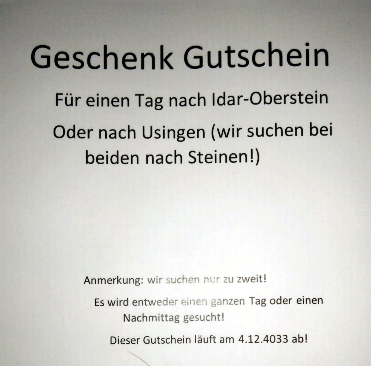 Da er an Steinen überhaupt kein Intresse hat (ganz anders, als mein kleiner), ist dies eine echte Überraschung gewesen. Schön ist obendrein, dass ich gleich zwei mal diesem Gutschein bekommen habe. Mein kleiner hat mir dasselbe geschenkt, nur dass er es in einem Bild gemalt hat, welches er mir mit einem selbstgemachten Geburtstagskuchen überreichte +##