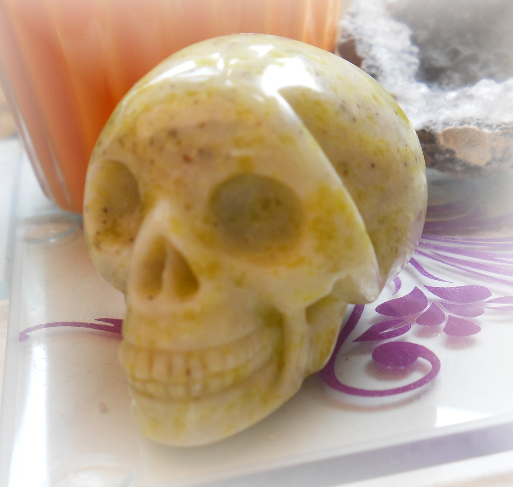 Glückwunsch zum neuen,der passt ja ganz toll zu deinem bereits vorhandenem Fluorit Skull,sehen aus wie Geschwister!Viel Freude!