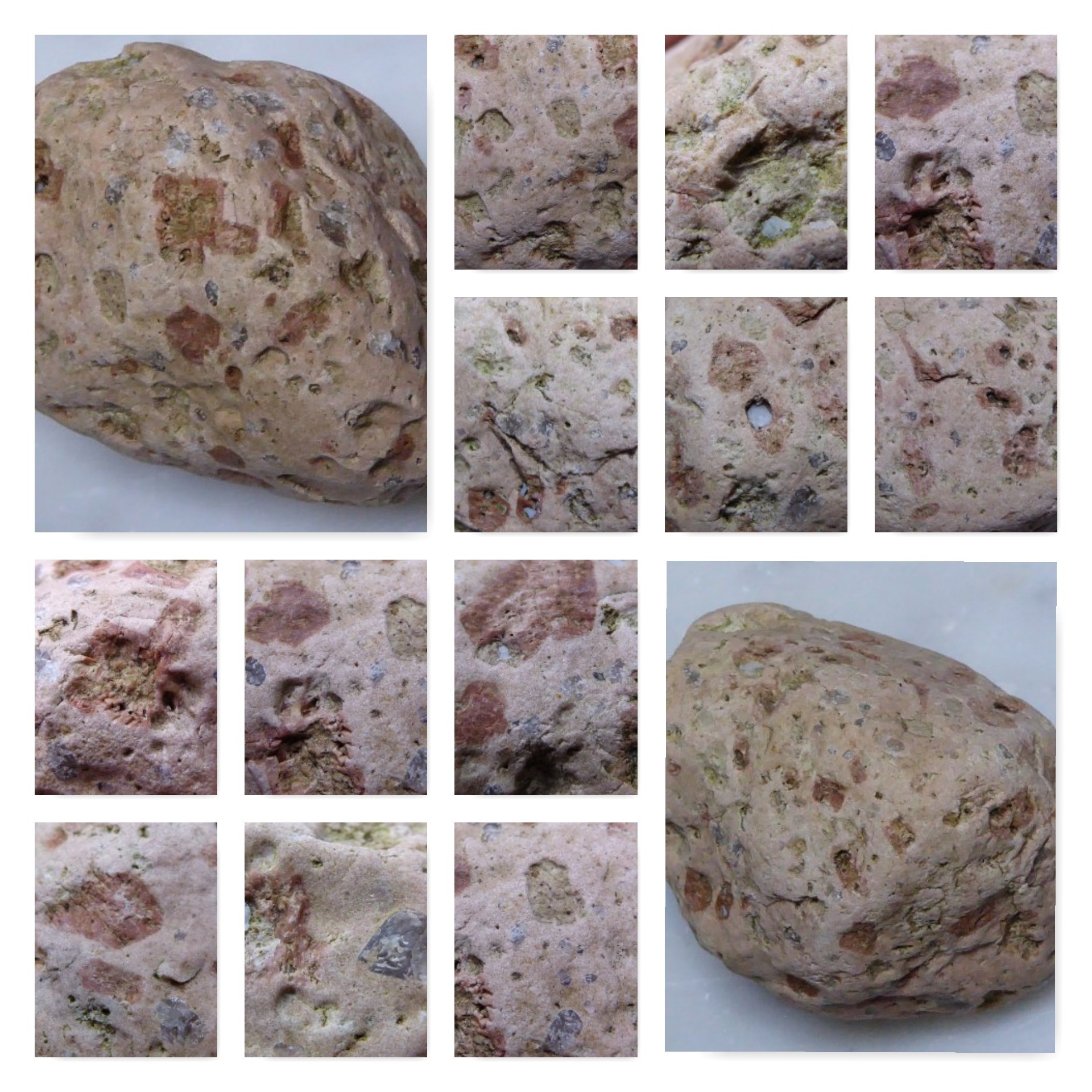 Hier drei besondere der getrommelten, ich glaube man nennt die mit den durch grünen (aber nicht immer) Plagioklas gerahmten Feldspateinsprenglingen Rapakivis?