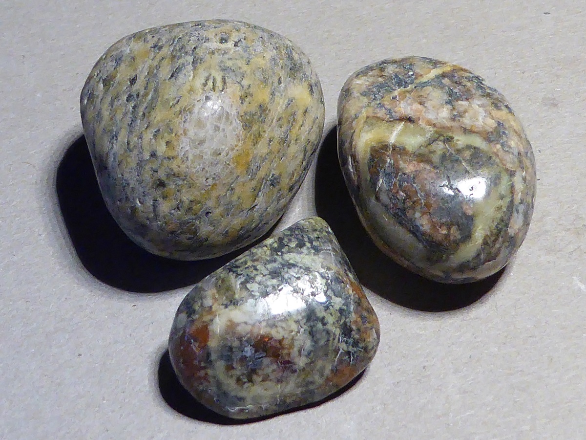 Morgaine999 hat geschrieben:Hier drei besondere der getrommelten, ich glaube man nennt die mit den durch grünen (aber nicht immer) Plagioklas gerahmten Feldspateinsprenglingen Rapakivis?