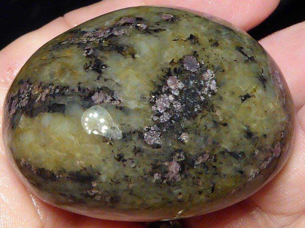 Hier jetzt wieder was zu erraten, der Stein in fast Herzform mit Granat, der mir neulich mitgeholfen hat. Jetzt nach der 400er Körnung ändert sich was, im Tageslicht wandelt er die Farbe zu blau. Was ist das denn jetzt ??? Ich habe ihn handpoliert, weil er schon ziemlich glatt ist, weiß nicht ob er noch mal reinkommt in die Trommel: