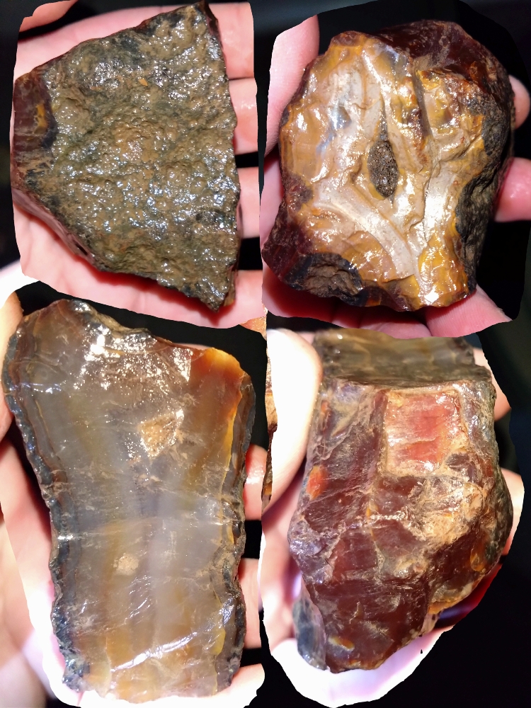 Ich hatte mich gefreut, ein so großes Stück Gang Achat gefunden zu haben (das untere im Bild), doch Zuhause, nach dem waschen, stellt sich heraus, dass es ein Jaspis ist und kein Achat.