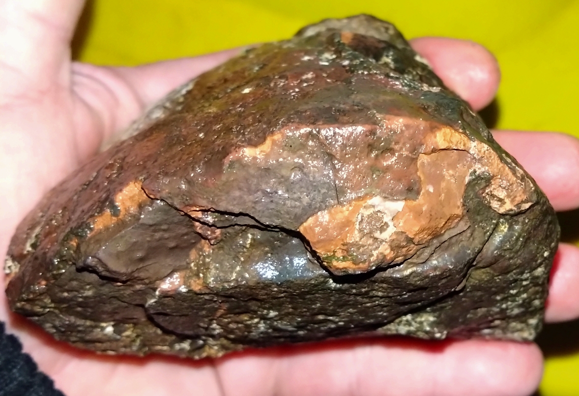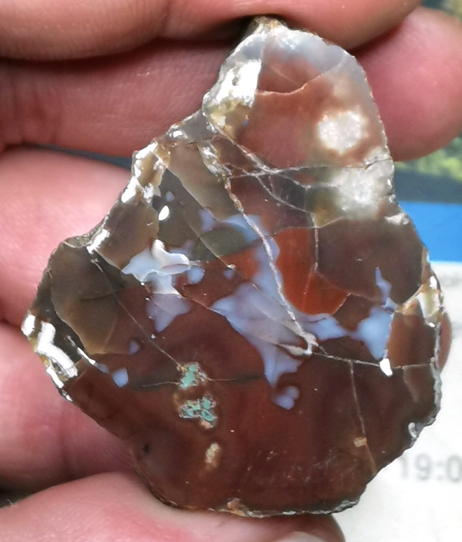Die Stücke können auch Moosachat enthalten (meist bräunlich), mit Jaspis auftreten oder in Rhyolith eingebettet sein (siehe unten). - IMG_20230305_200347(2).jpg (229.21 KiB) 5460 mal betrachtet