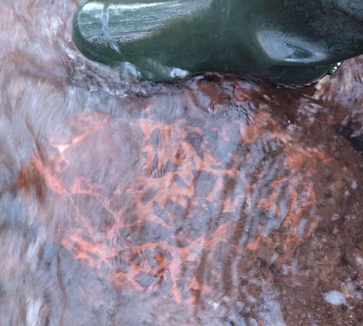 Da es hier, wie fast überall, viel geregnet hatte, war der kleine Rinnsal fast Kniehoch geworden, so dass ich mit meinen Gummistiefeln doch etwas aufpassen musste.