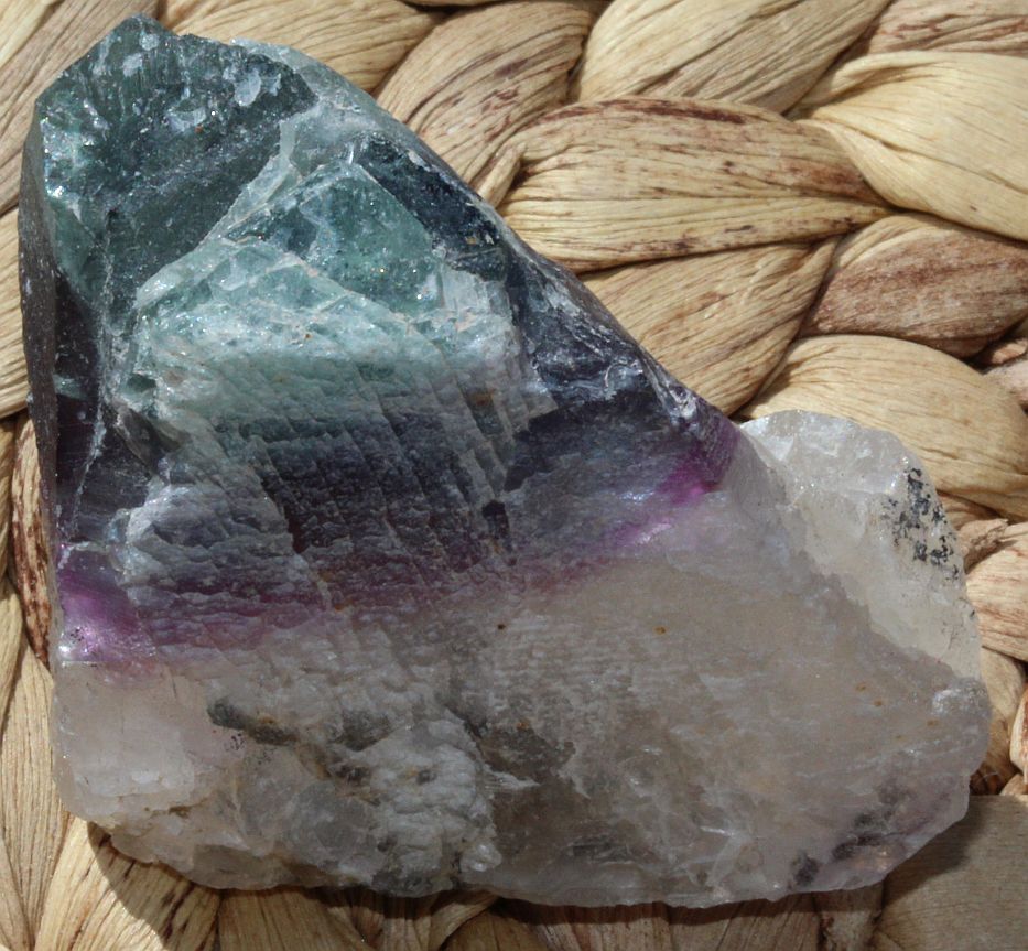Im Moment habe ich gerade dieses Rohstück von Regenbogenfluorit in der Hand, das gestern auch gekommen ist.