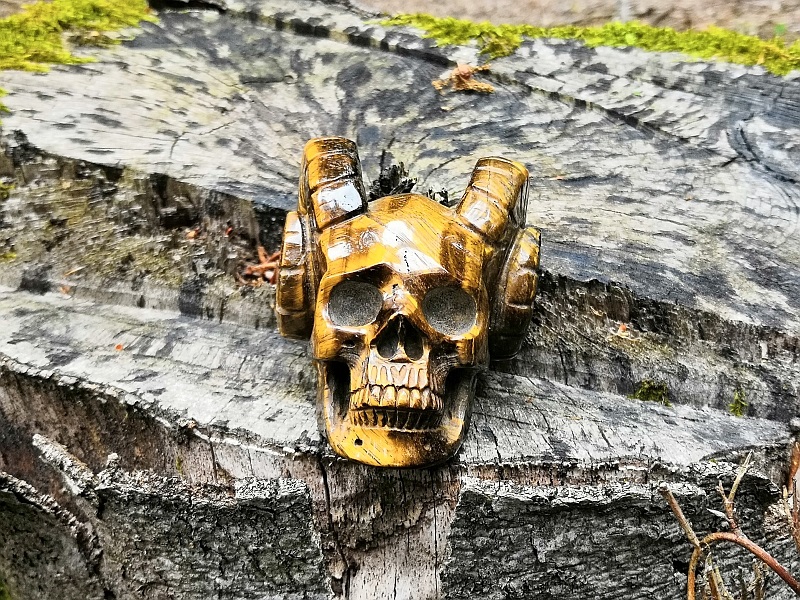 Und in den Wald begleitet hat mich wieder mal mein Tigeraugen-Skull. Der ist aber auch echt fotogen.