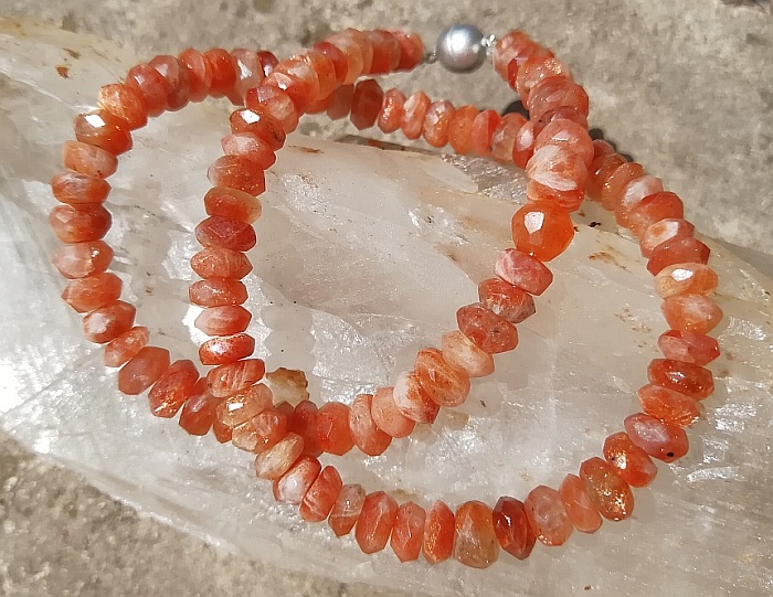 Sonnenstein (als Kette, siehe Bild) und Bernstein (als Armband) hatte ich heute auch eine ganze Weile an mir.