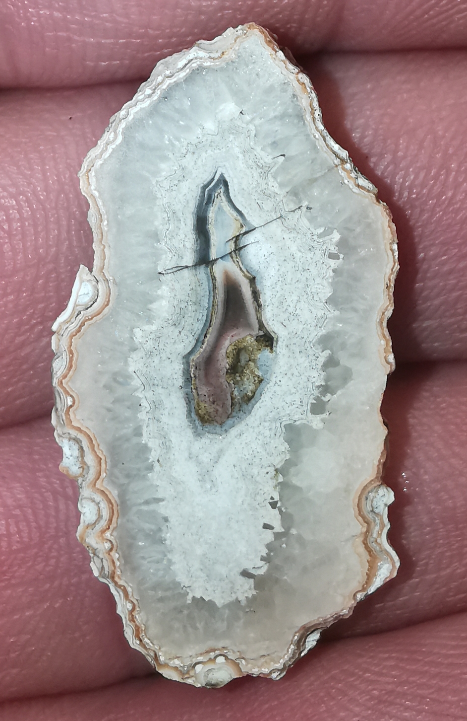 Ich kann mir vorstellen, dass es vielleicht eine Art von Trümmerachat ist, der verwitterte und sich mit etwas anderem wieder füllte.