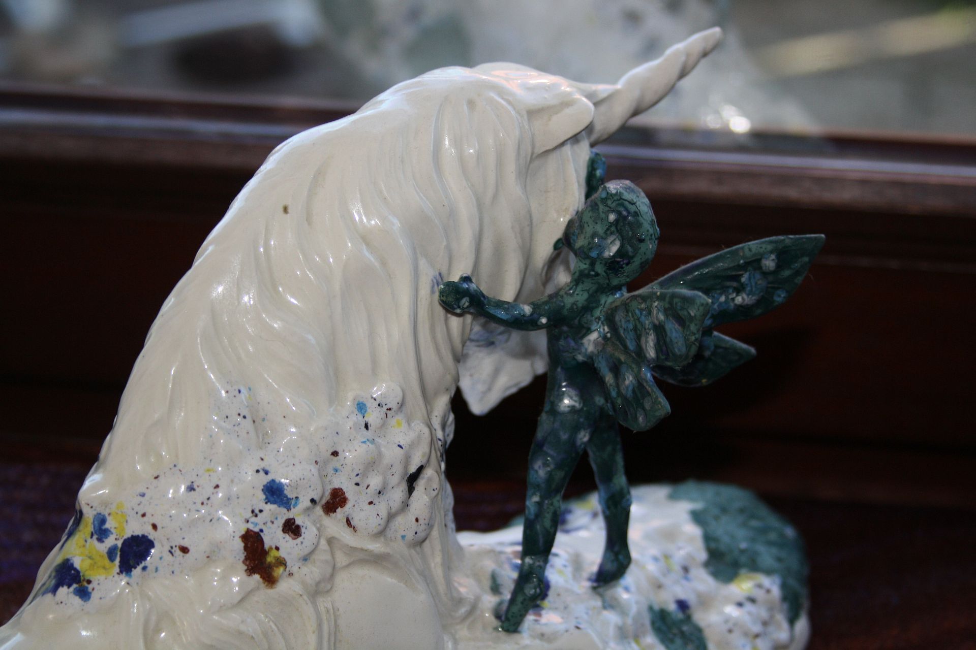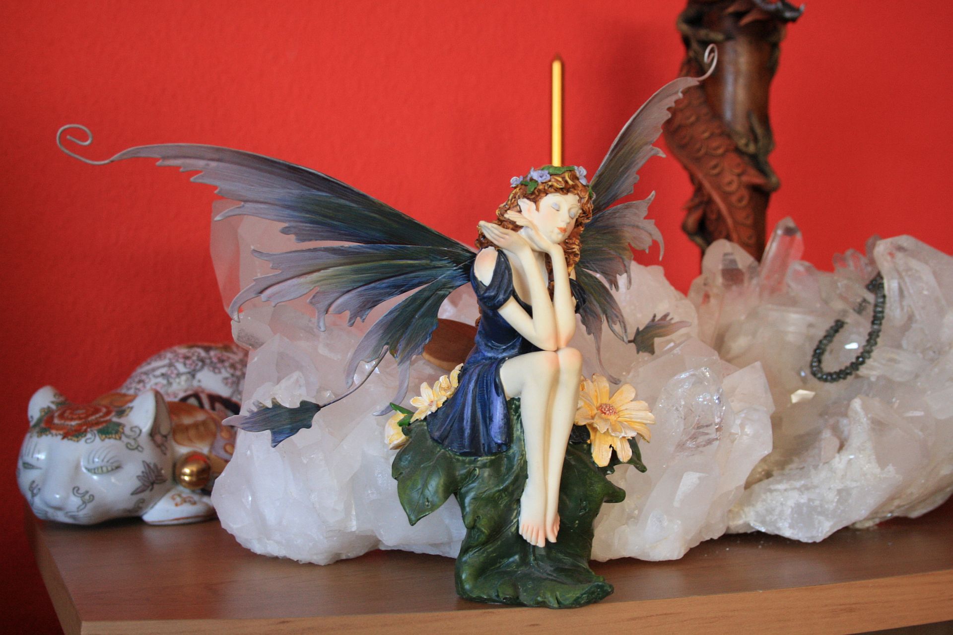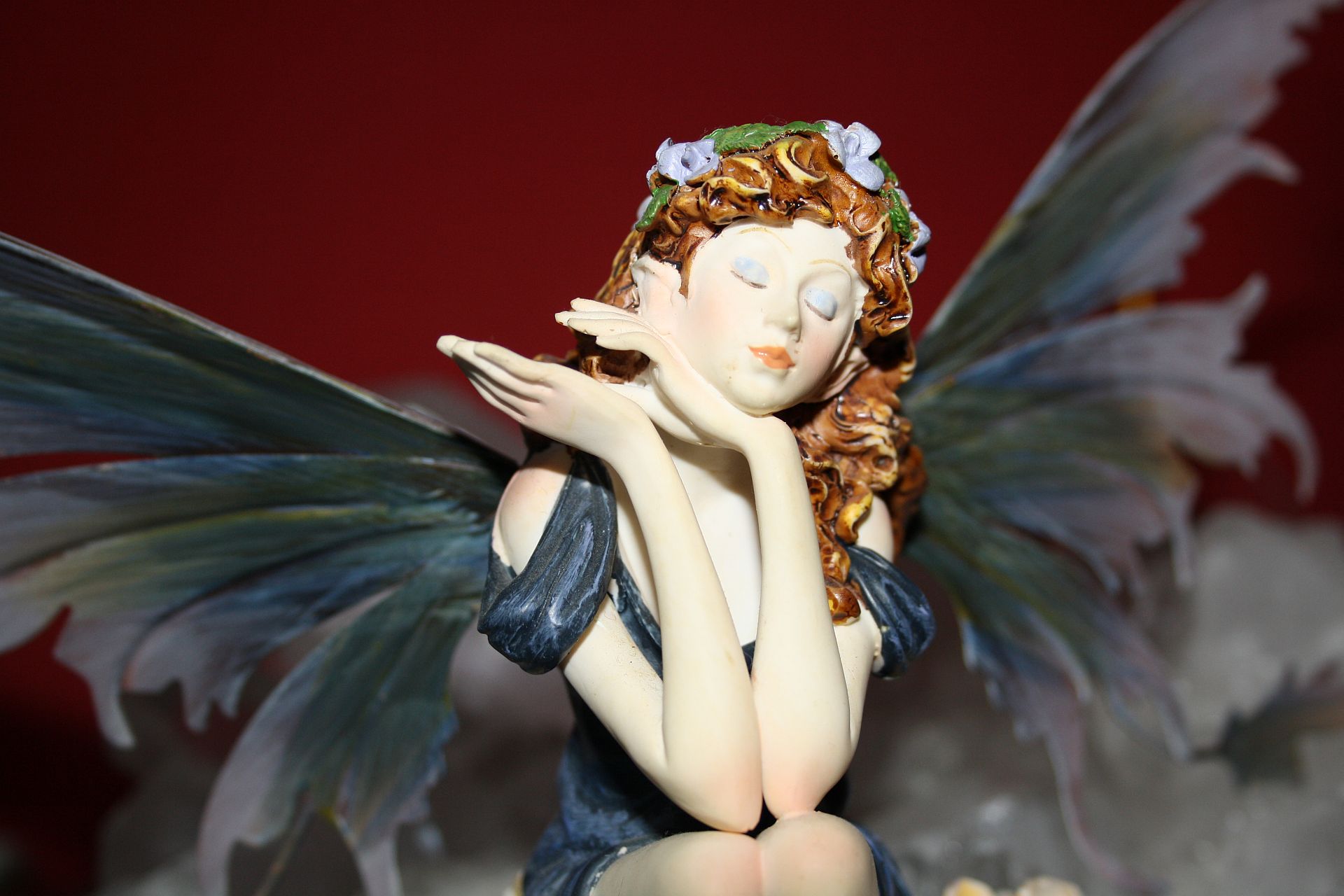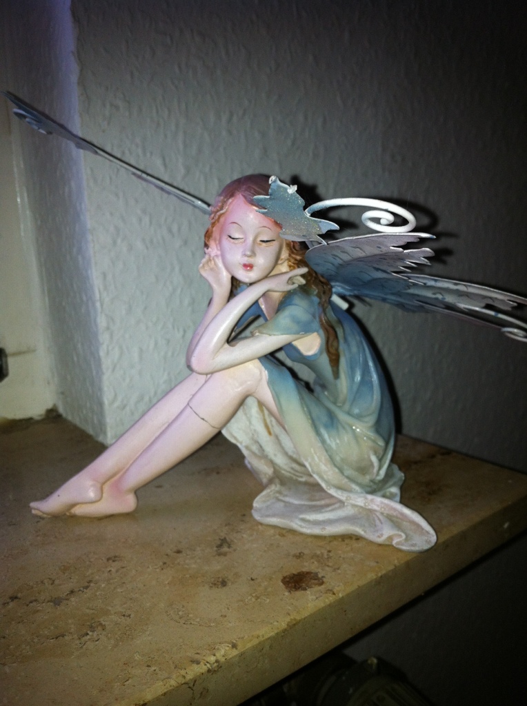leider hat das elfchen mal versucht ohne flügel zu fliegen... da sind die beinchen abgefallen, wurden aber wieder liebevoll angeklebt.. ist die schwester vom andern elfchen =)