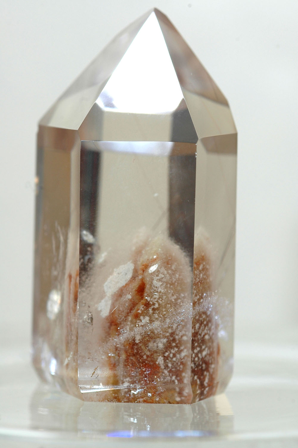 wunderbare Bergkristallspitze mit leichtem Eisenüberzug und nach innen eingewachsenen Mini-Kristallen