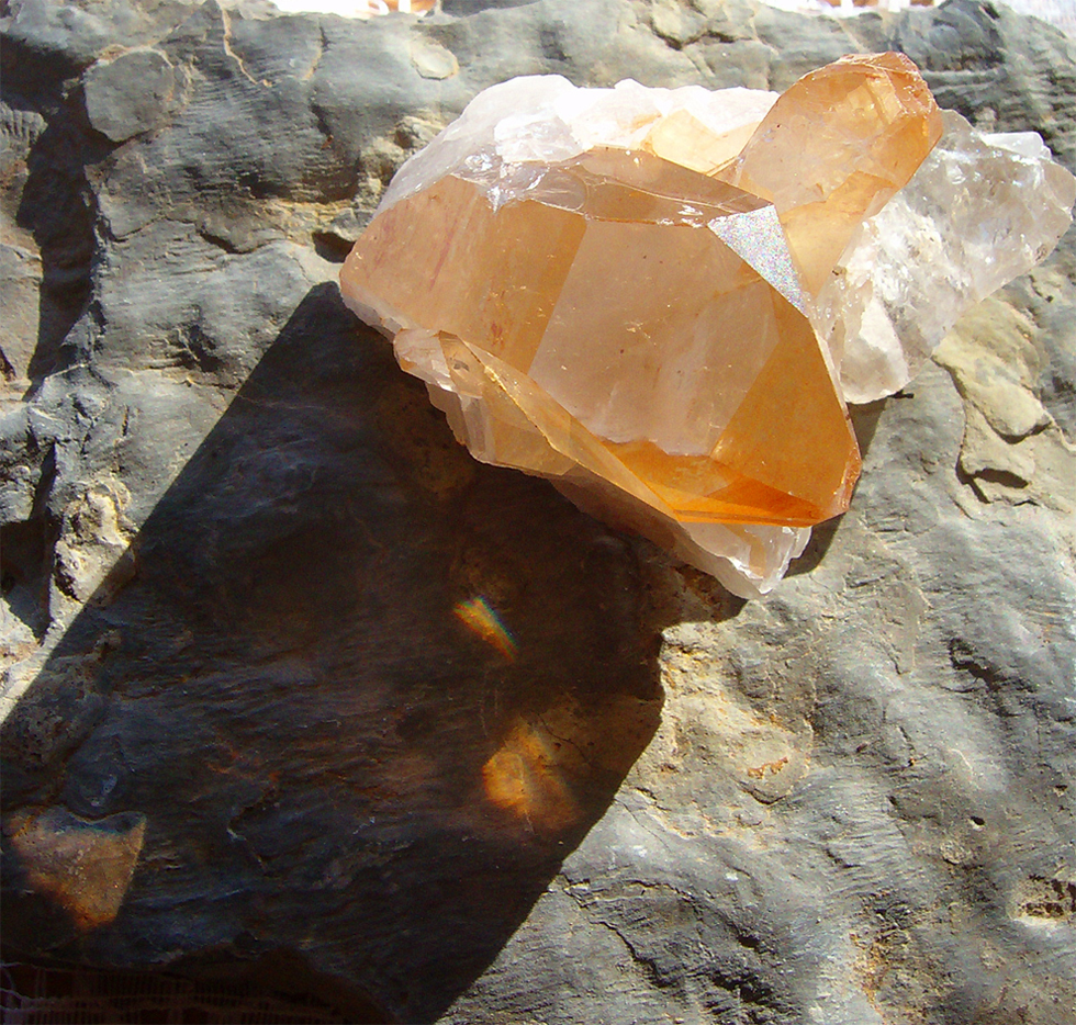 ein Bergkristall-Doppelender mit wunderbaren Lichtern im Inneren