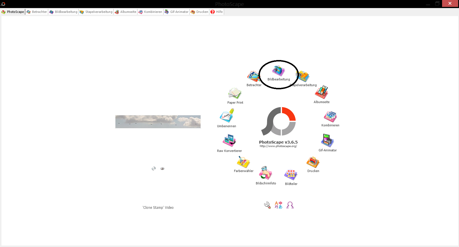 Das erste Bild zeigt das Prog direkt nach dem Start, Bildbearbeitung ist eingekreist: