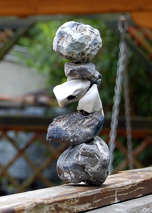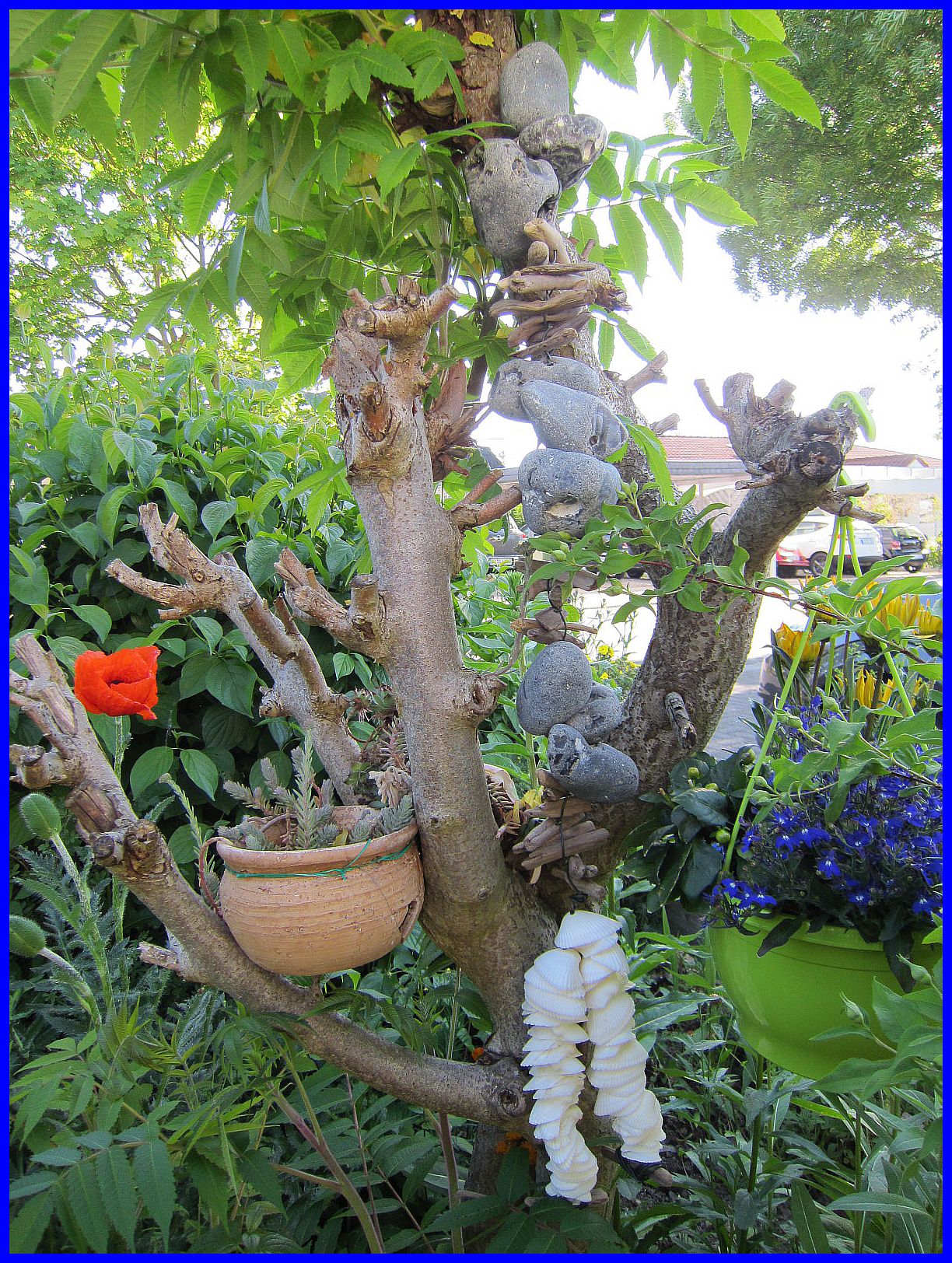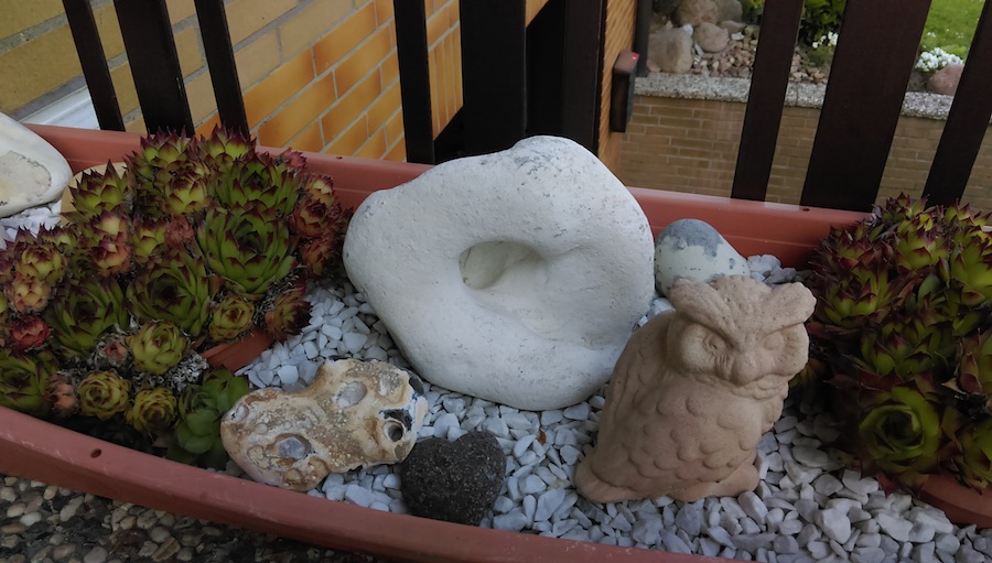 Wir haben wieder ein paar Hühnergötter im Garten dekoriert