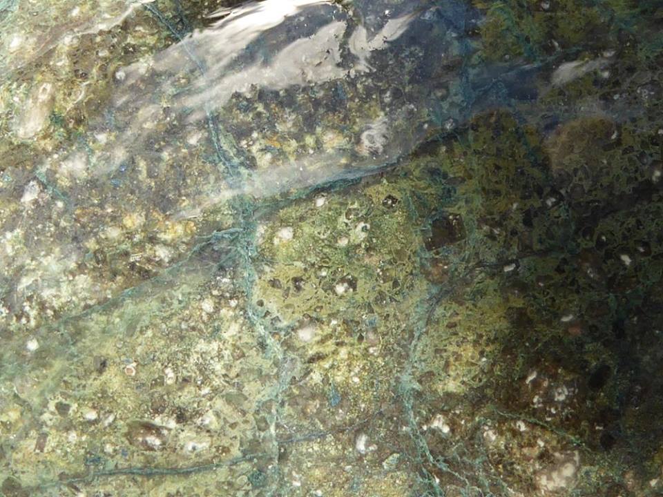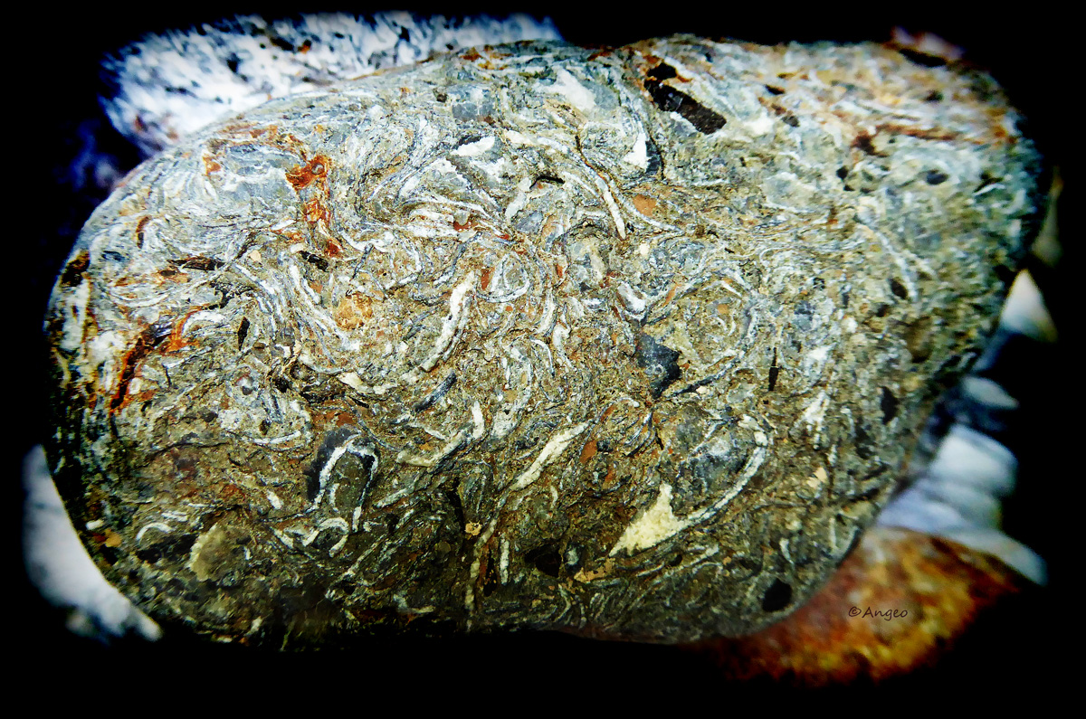 Und hier noch ein Rätselstein grob angeschliffen. Würde ihn für einen Ignimbriten halten? Und mit kleinen Olivinen bestückt?