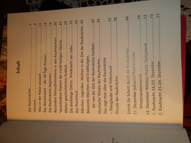 Ich hätte da ein Büchlein, das ich mir letztens bestellt habe, über - Das Geheimnis der Rauhnächte-, ich hab´s noch nicht gelesen, deshalb kann ich dir leider nicht viel sagen. Ich weiß aber wegen meiner Recherchen, dass es da gar nicht viel gibt über dieses Thema allgemein. Das andere kennst du ja bestimmt von Chr. Fuchs , da geht es hauptsächlich um das Räuchern.