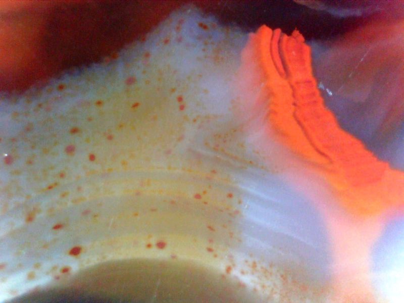 Mit einem Micro-Aufnahmegerät habe ich versucht,wie Achatkerne -ganz nah aufgenommen (50 bis 100 fach vergrößert)im Detail aussehen.