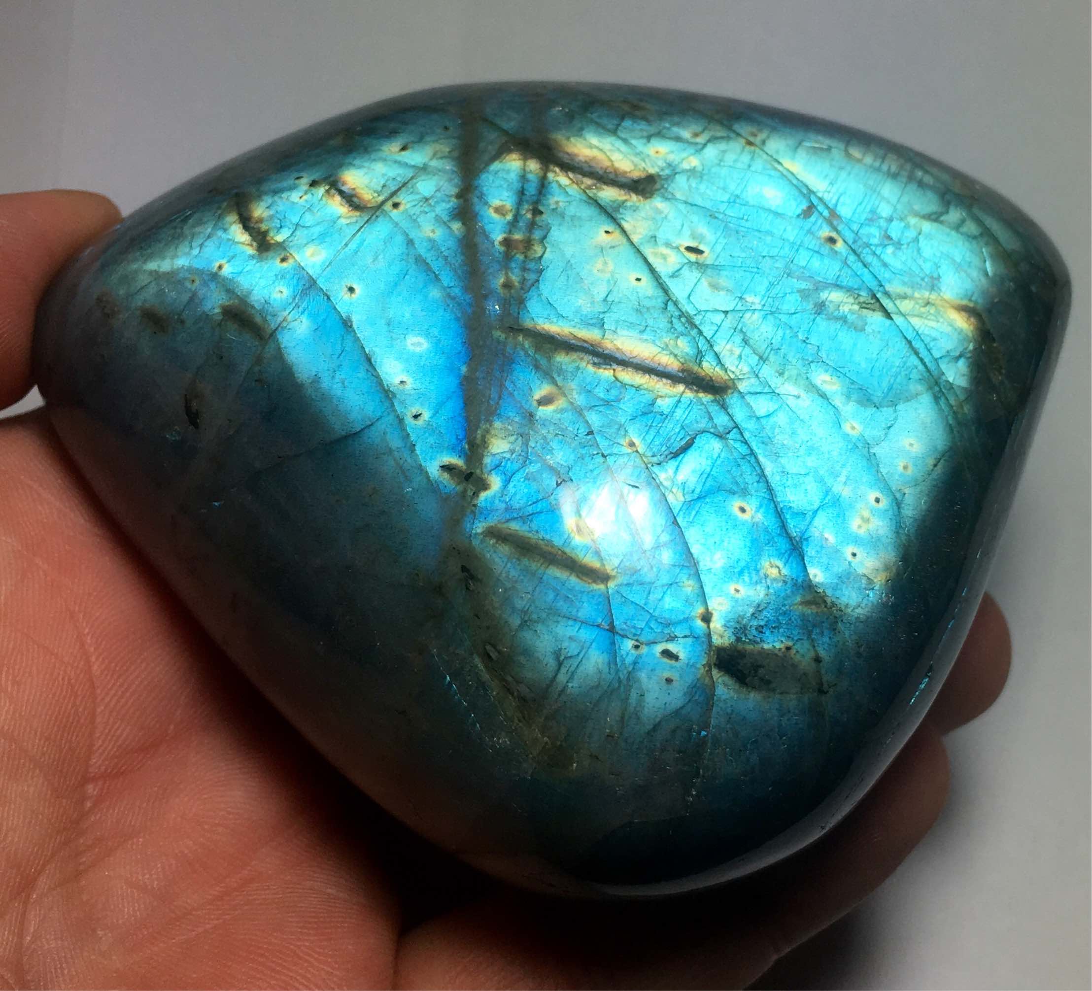 Auch ein schönes Stück ja die Farbenpracht zieht uns an, habe auch etliche Labradorite.