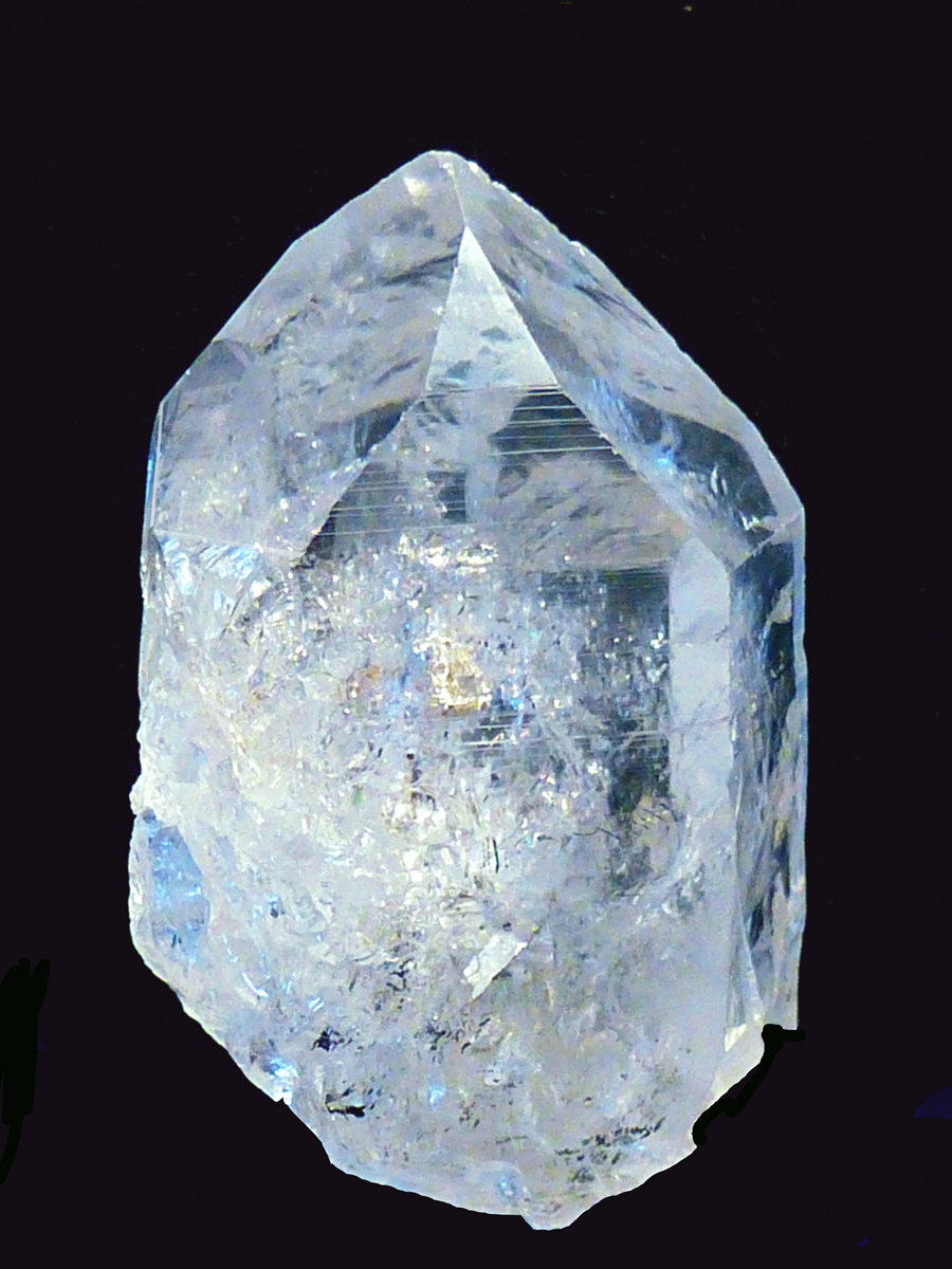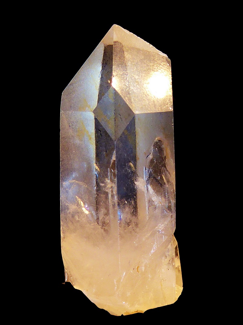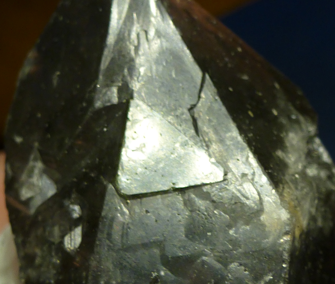 Ein Trigonic ist ein Kristall wo scharf in den Kristall geschnittene Dreiecke entweder auf den Rhomboederflächen oder den Prismen zu sehen sind, die nach unten weisen. Es können Abdrücke von anderen Kristallen sein, die sich gelöst haben. Sie zeigen also etwas was vergangen ist, hätte sein können, sich umgeformt hat und sie sind richtungsweisend sozusagen, von oben nach unten. Jetzt ist es nicht nur das Wissen eines Buches, sondern das einer riesigen Bibliothek, das zu uns kommt, wenn es das für sinnvoll hält,.Wissen aus dem Überbewusstsein, aus anderen Räumen, Dimensionen.