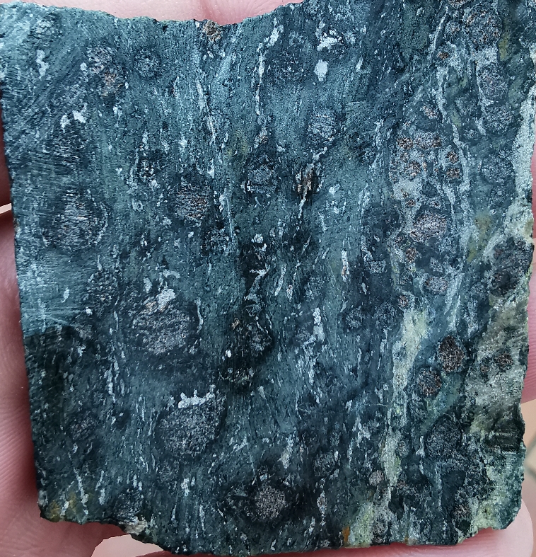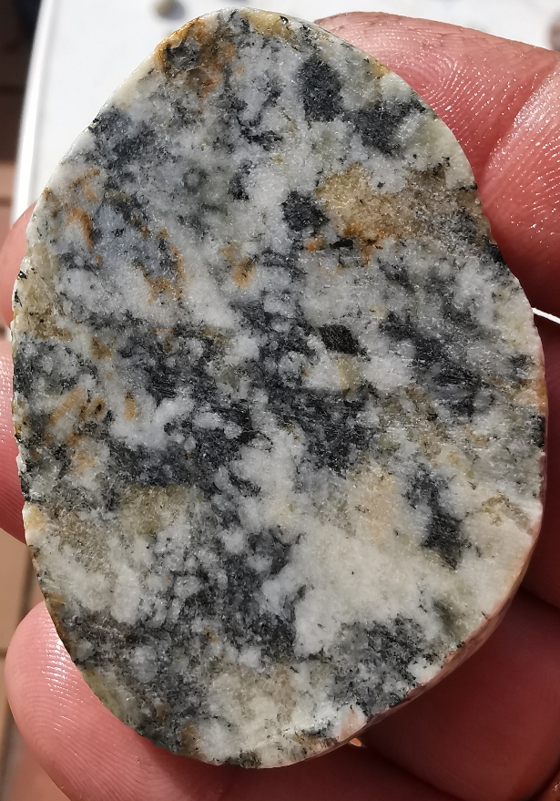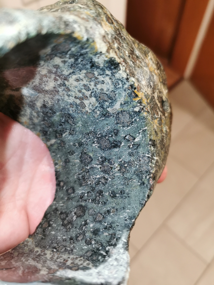 Alleine das Gewicht hatte mich etwas irritiert, da er für einen primär kalkhaltigen Stein zu schwer war. Also habe ich ihn doch aufgesägt.