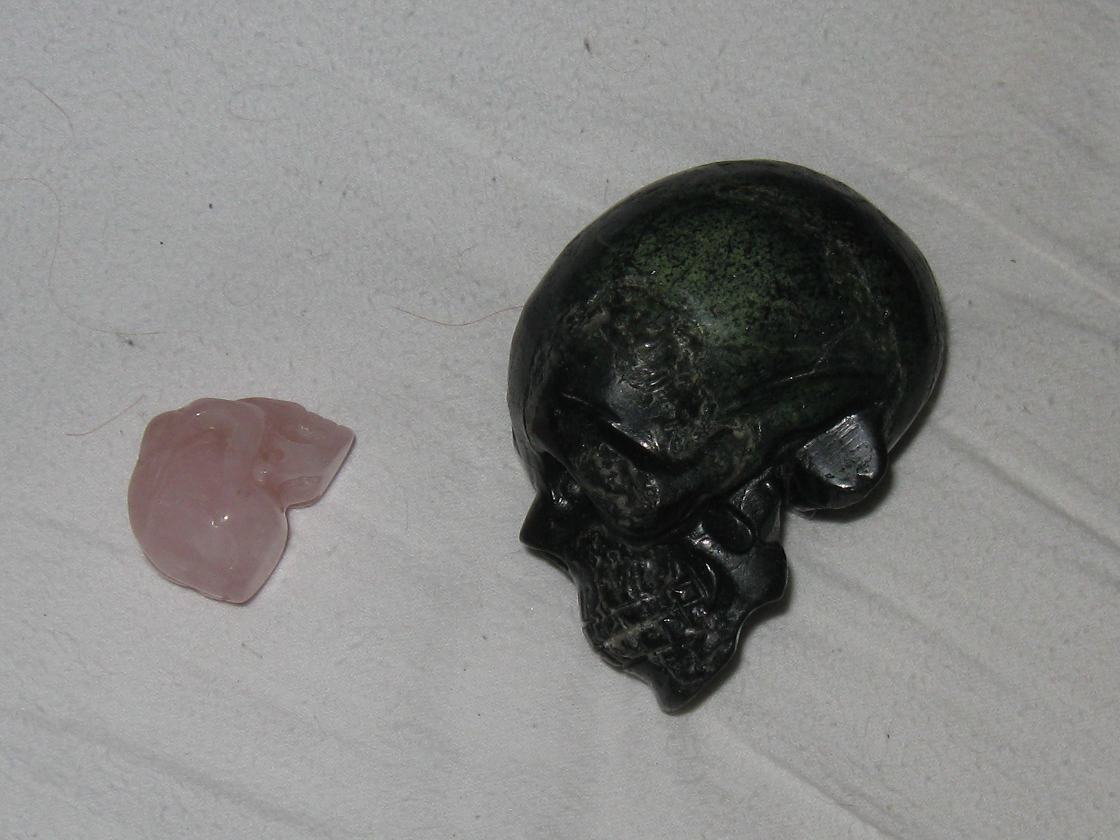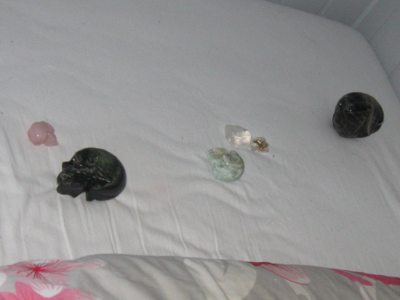 Das sind ein silberaug serpentin, und Thorny Rose, rosenquartz alien .Einen kleinen girasol, , Sparkle, meinen Muscovit in quartz skull, Aramir aus Hemimorfit und dan noch und Moon, mein schwarzer mondstein schädel. Sparkle und Rosey thorne haber erst vor ein paar tage ihren namen geflüstert