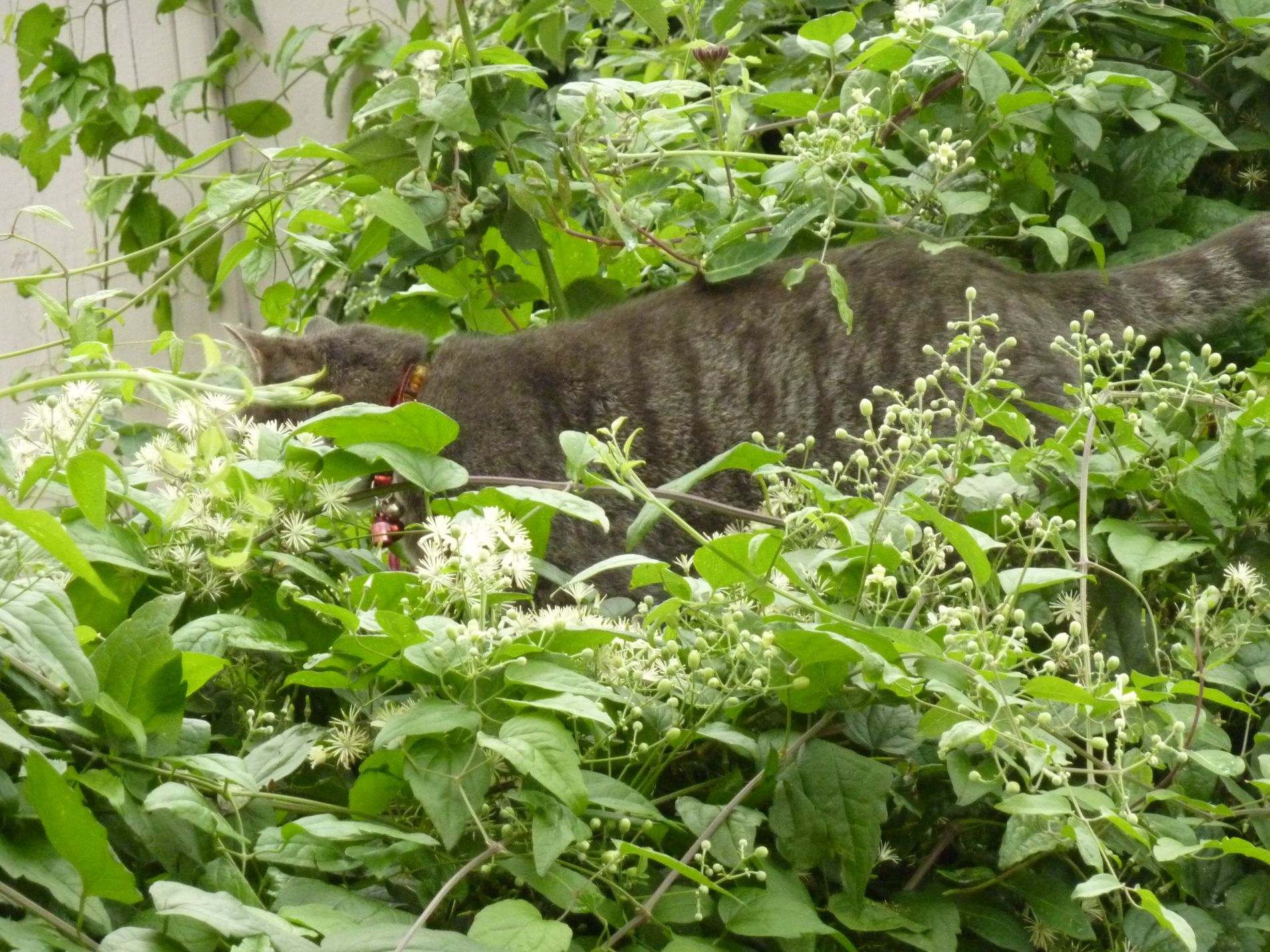 Das ist ein Gesträuch in dem immer Spatzen sitzen. Und weil die einfach nicht von alleine runterfallen wollen, muß Pata eben hinein klettern......