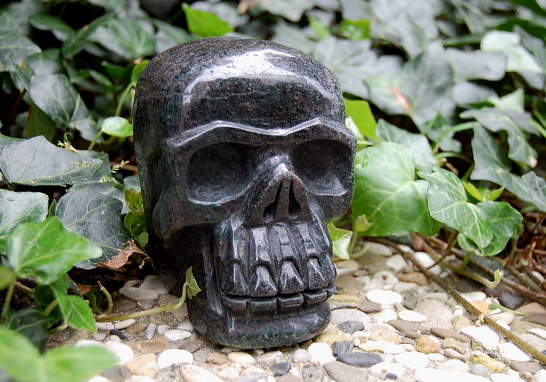 Dieser nette Kerl, ein Heliotrop, hat ein paar kleinere Macken. Ist wohl das Risiko bei günstigen Köpfchen, dass die Qualität manchmal nicht ganz so toll ist. Deshalb schaut er wohl auch so ein bisschen betreten aus der Wäsche. Aber Macken hat doch jeder und er passt ganz wunderbar in meine Skull-Familie. Sein Name ist Argon