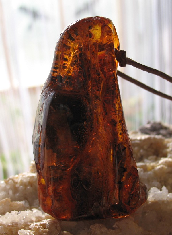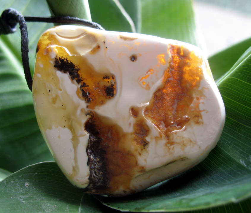 Ich hab den wunderschönen weißen Bernstein-Anhänger zum Hochzeitstag bekommen, von meinem Liebsten