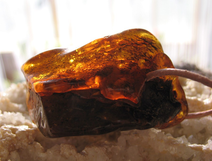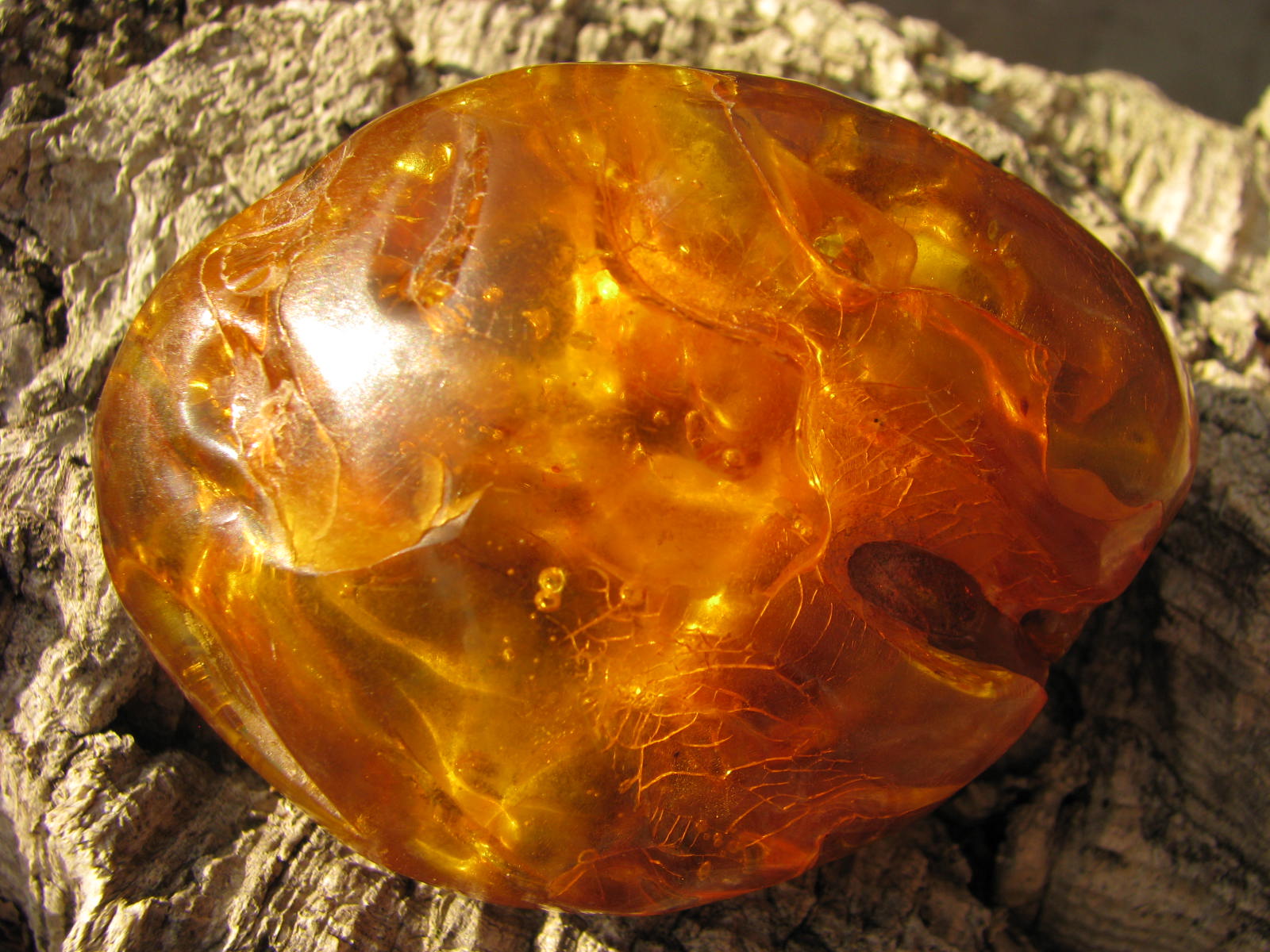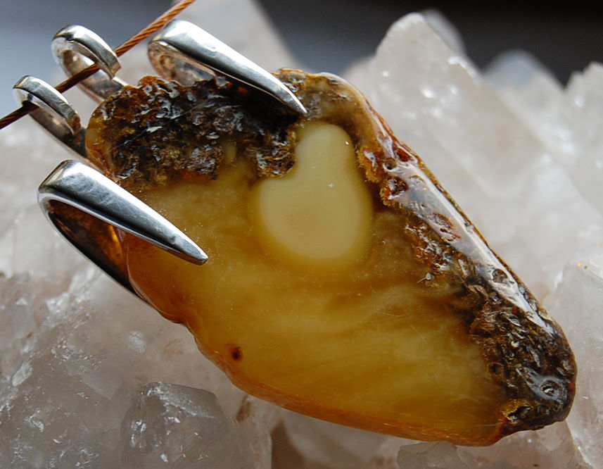 Der weiße Bernstein wird auch Königsbernstein genannt, denn er war in früheren Zeiten nur dem König vorbehalten. Die Farbe kommt von der Oxydation des Harzes mit anderen Baumsäften.