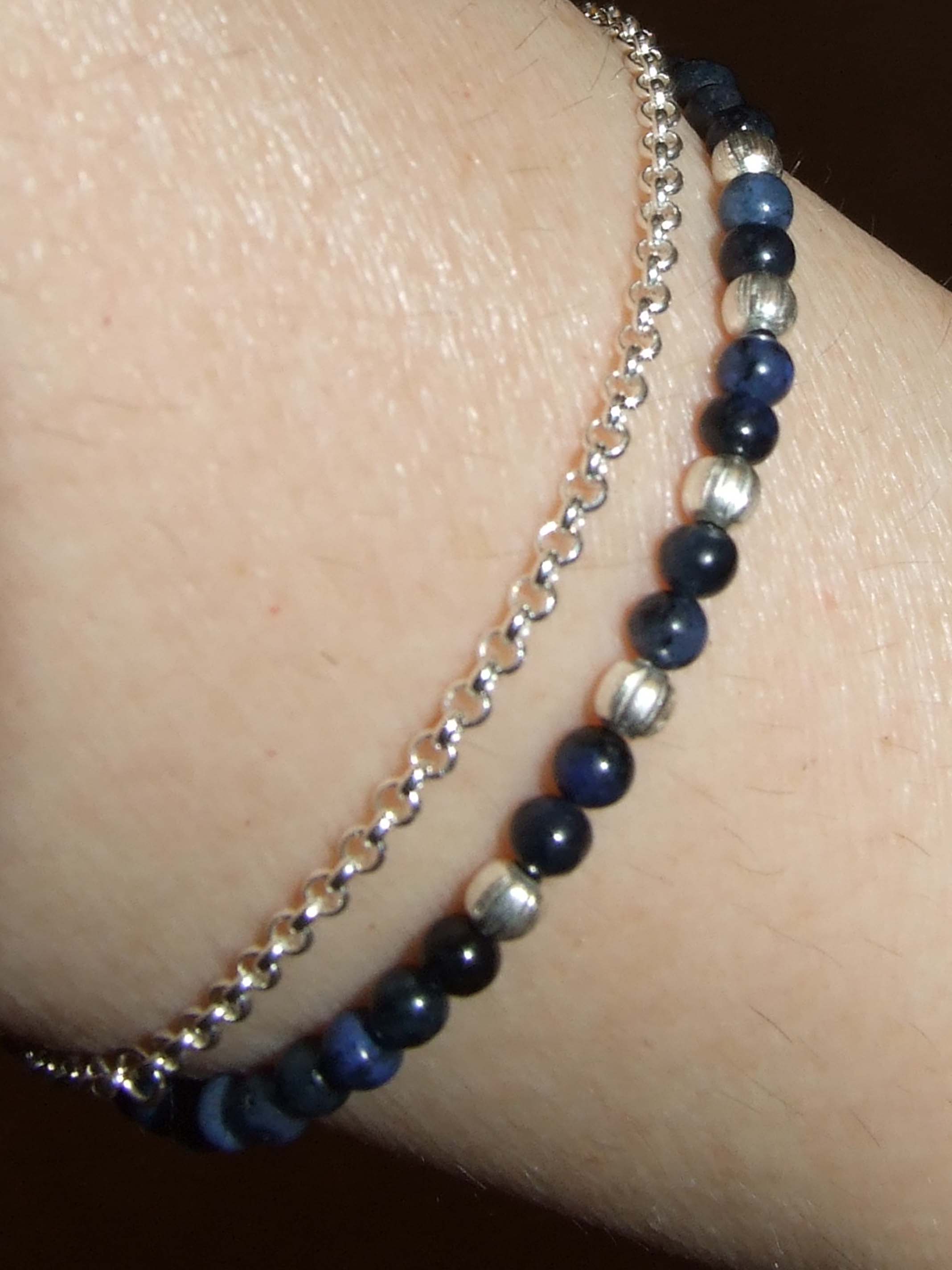 ein zartes Dumortierit-Armband mit 3 mm großen Kugeln. Irgendwie wollte ich die restlichen Dumortieritkugeln nicht ungenutzt herum liegen lassen. Hatte ja davon schon ein Doppelarmband gemacht.