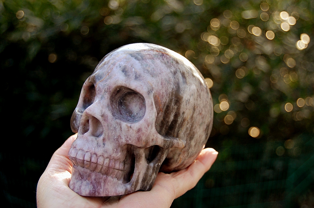 Rauchquarz-Skull auf Sonnenspiegel bearbeitete Fotos