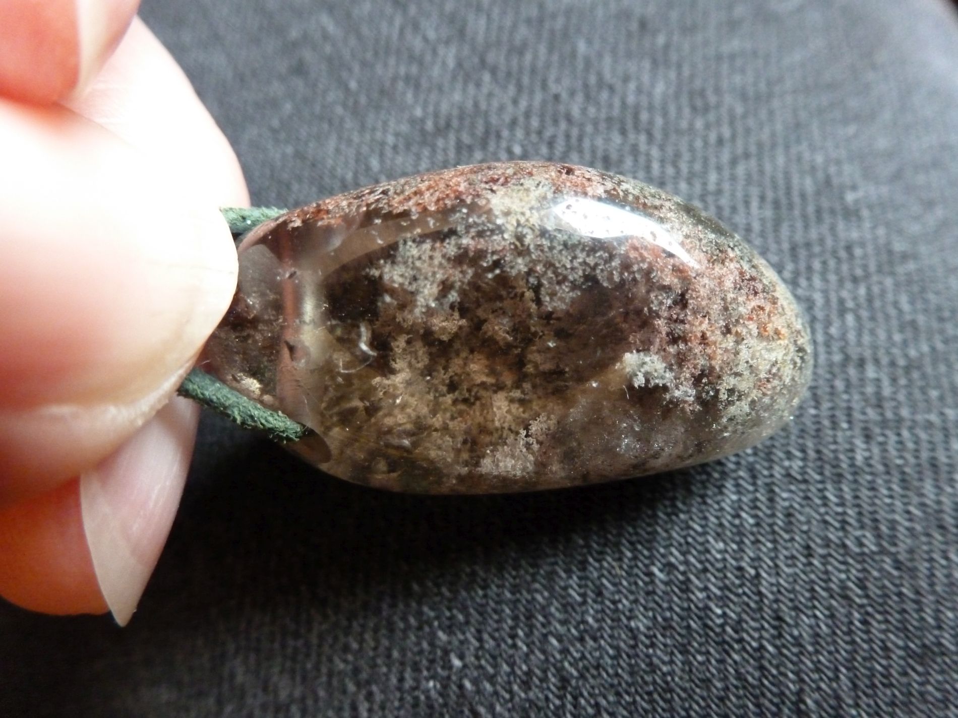 Eine Chiastolith-Kugel als Anhänger. Sie hat schöne Glimmerstellen, was mir sehr gut gefällt.