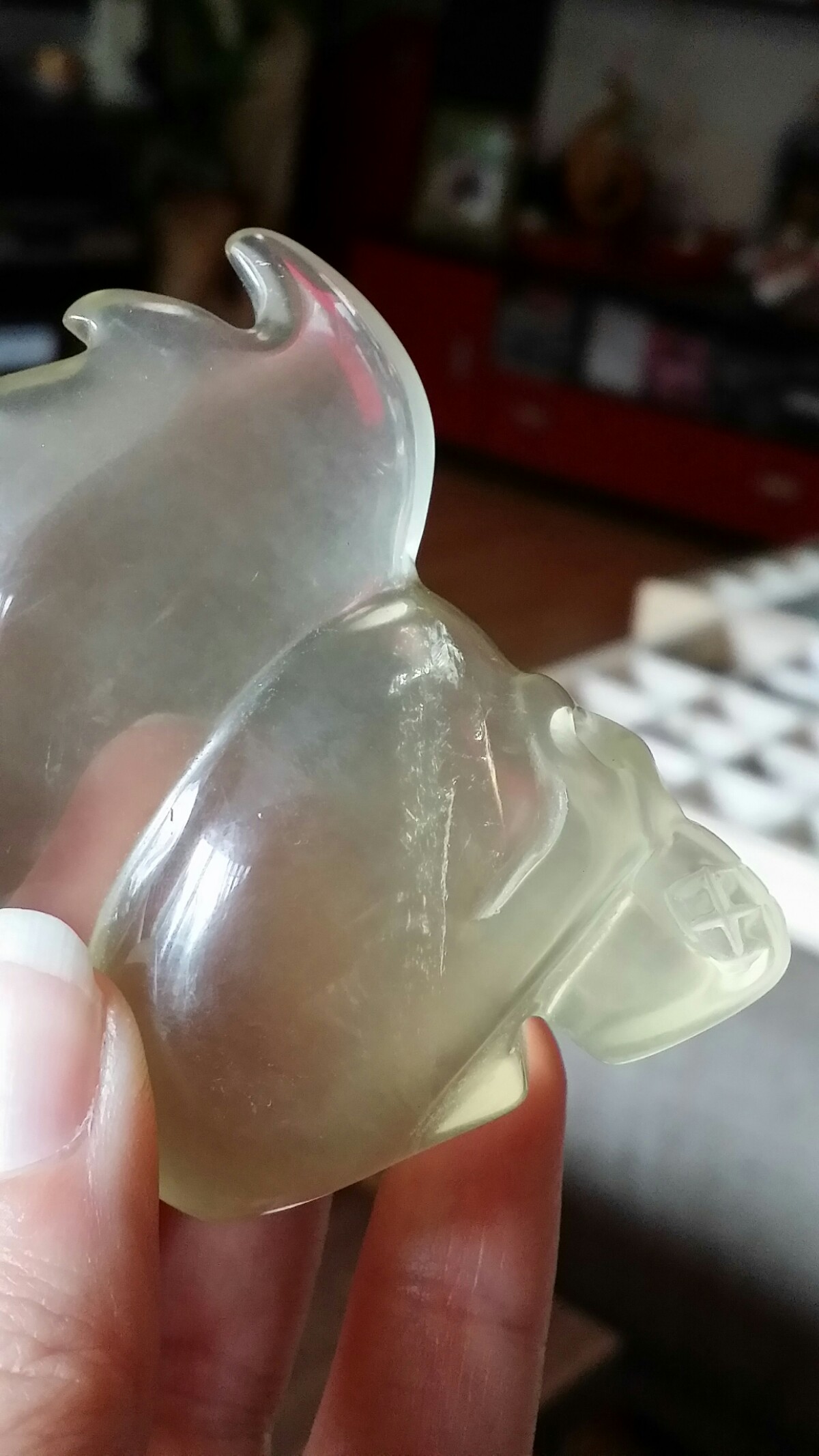 Bei Einen anderen Händler habe ich später so einen ähnlichen in Rot oder blau gesehen....wurde als geschmolzene Quarz angeboten.