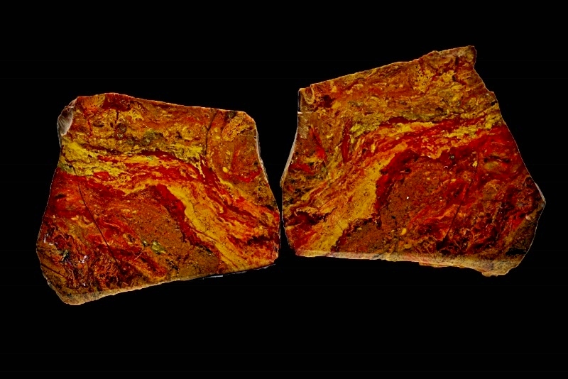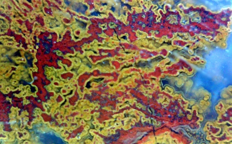 Als Bilder zeige ich einen geschnittenen und polierten Jaspisbrocken sowie Microaufnahmen des Jaspis