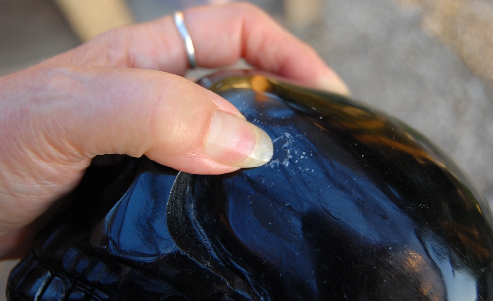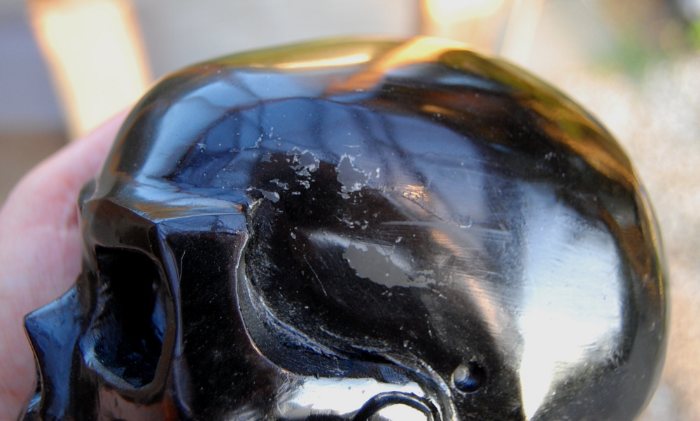 ....gekauft als schwarzen Obsidian ...eigentlich ein sehr hübscher Skull, - aber kein Obsidian